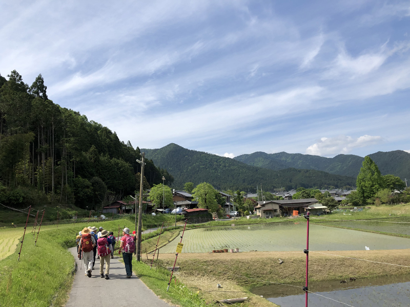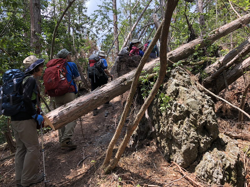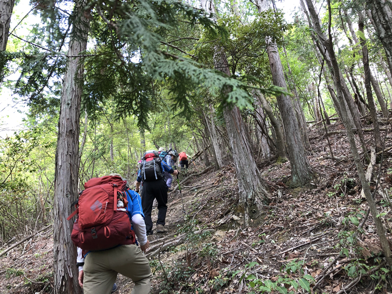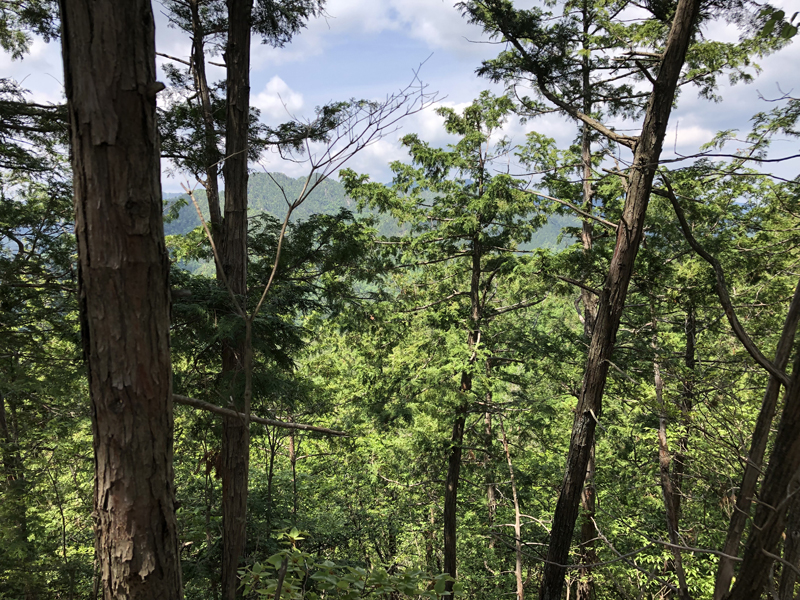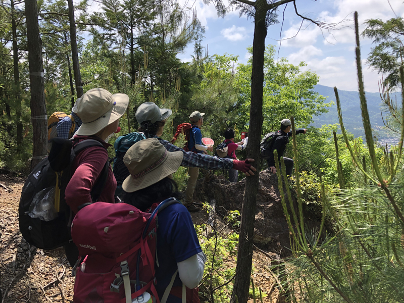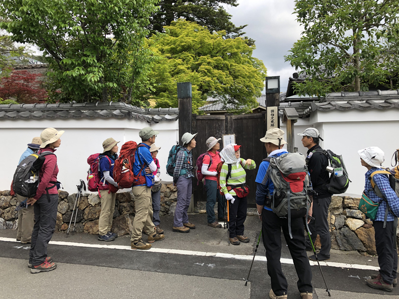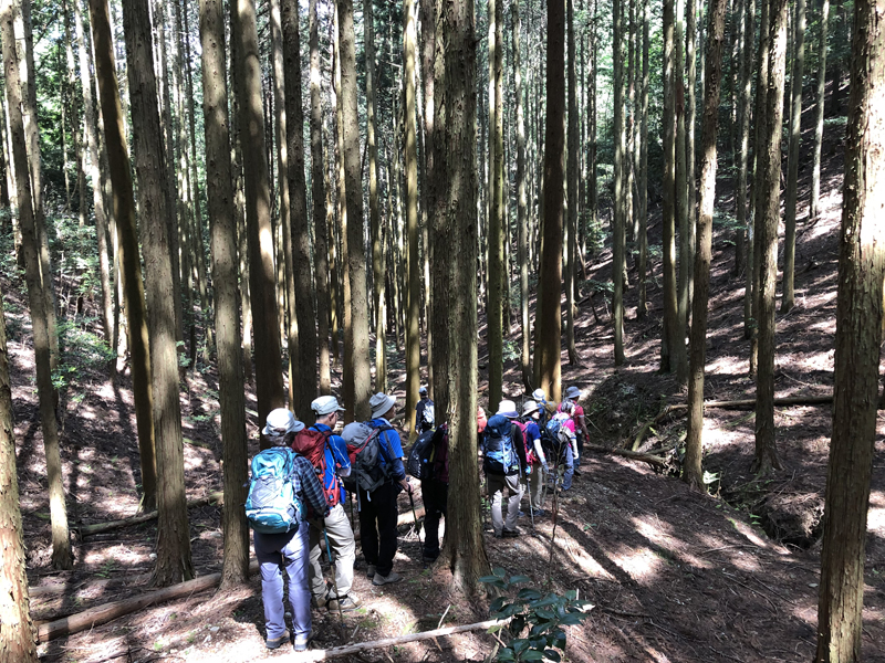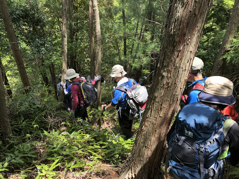 岩倉実相院前でバスを降り、岩倉具視幽棲旧宅の前で歴史に造詣の深いIさんから岩倉具視の解説をしていただいた後、繁見坂から箕ノ裏ヶ岳へ登った。その後、展望の良い静原の墓を経由して、江文峠分岐から寒谷峠手前で東に折れて、戸寺バス停まで無事下山した。昨夏の台風の被害は甚大で、倒木をくぐったりまたいだり。それでも、時折吹く爽やかな風に癒されながら、新緑の山歩きを楽しんだ。(S.I.)