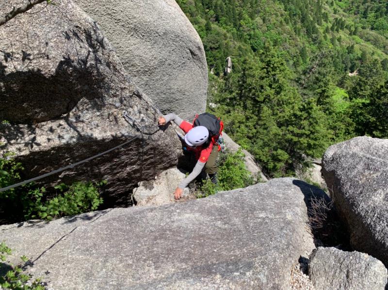 自己確保さえすれば難しい岩場でも比較的楽に登れるので、普段行けないような高度感のある場所に登ることが出来ました。