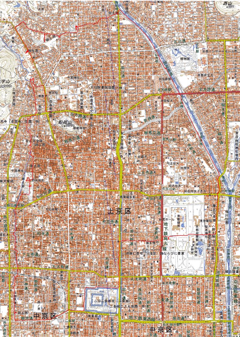 「御土居堀」は全長22.5km、内側を「洛中」、外側を「洛外」
