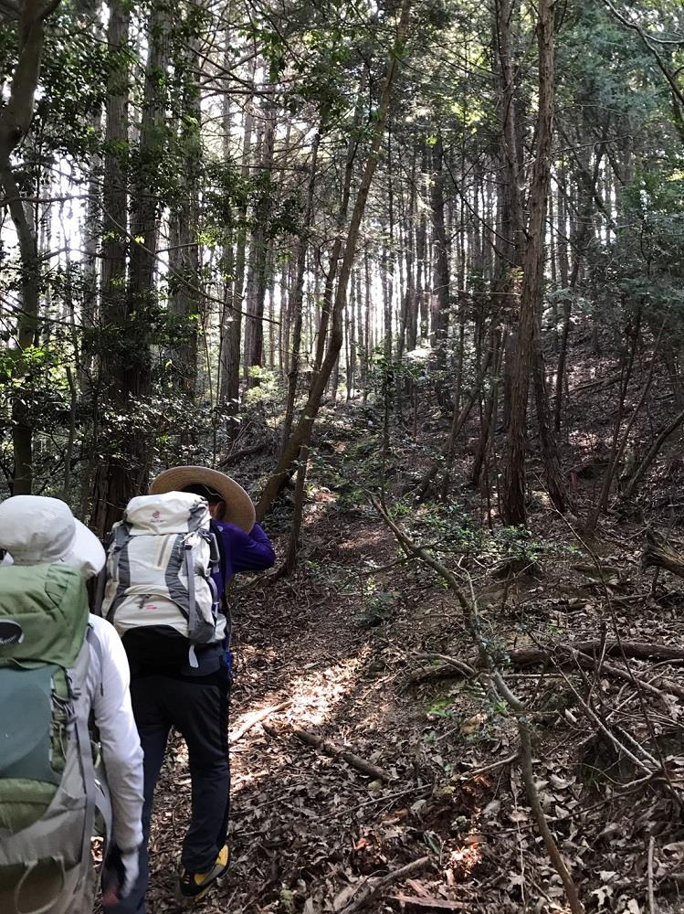 傾斜もさほど急でもなく樹木の中の歩きやすい尾根です。