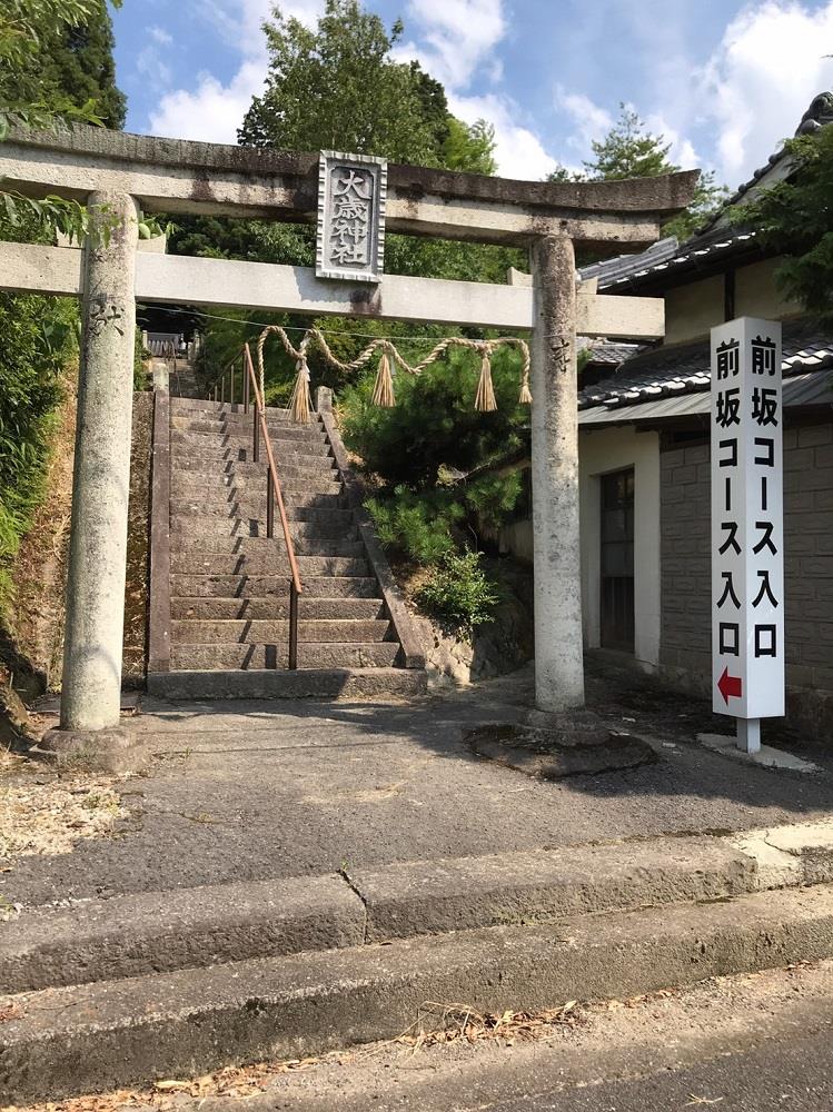 すぐに大歳神社があり、階段を登ると右手に白山への登山コースの標識があり、樹木もあり影の部分が多い。