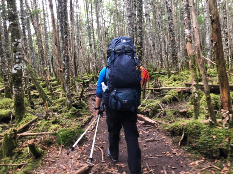 登攀が終了してテント場に戻り撤収した後、帰路となるルートを天狗岳の西尾根に決めて13時に下山開始。テント泊装備に加えクライミング道具一式詰め込まれたザックが異常に重く感じるが、