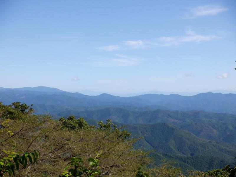 水尾から愛宕神社社務所裏まで登り、三角点へ立ち寄り。空気が澄んでいるのか市内や遠く伊吹山や鈴鹿山脈まで見渡せる。