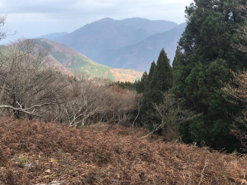 山頂からは、開けた北東方向に武奈ヶ岳、北側には木々の間に桟敷が岳が見える。