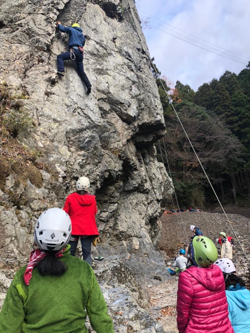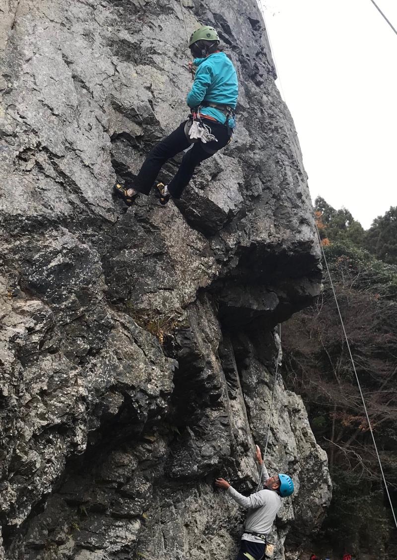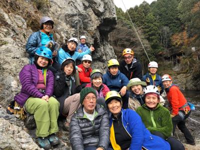 12月8日 納山会前の例会として、落合の岩場でトップロープでのクライミングを企画しました。Lの初例会ということもあり、ご祝儀で多くの方に参加頂きました。落合の岩場はあまり知られてなく、皆さん初めてだったと思いますが、それなりに楽しんで頂けた事と思います。H・N