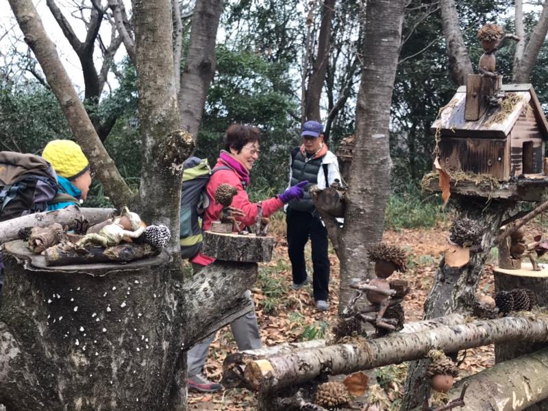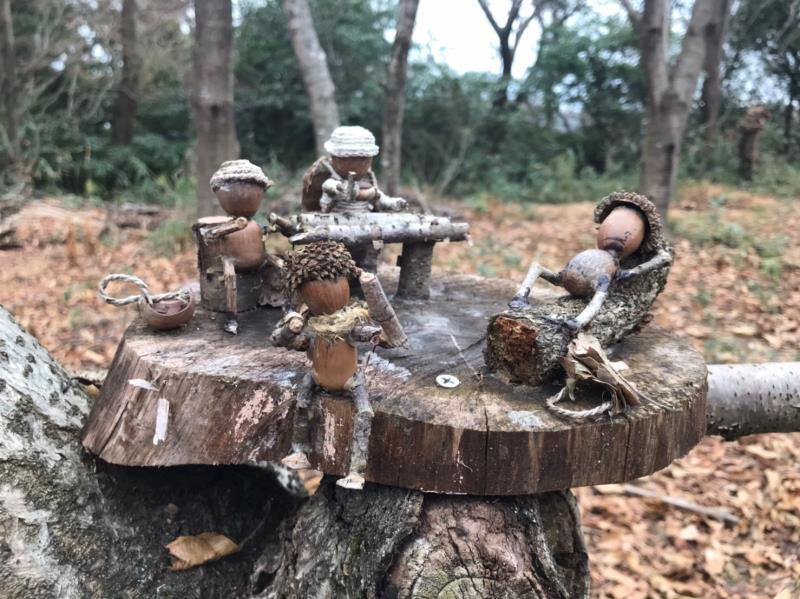 山頂を少し下りた広場にどんぐりアートが飾られていました。