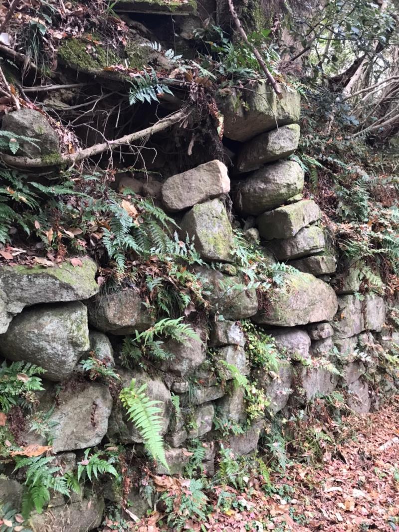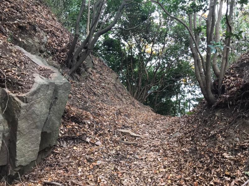 にわか山城ファンを自称されるリーダーの下、飯盛山の堀切や石垣を巡りました。