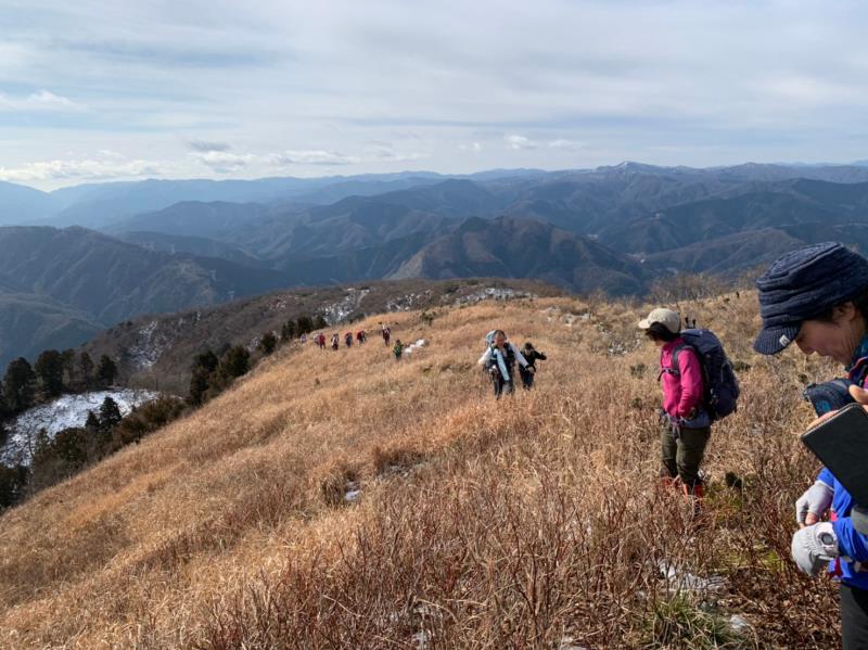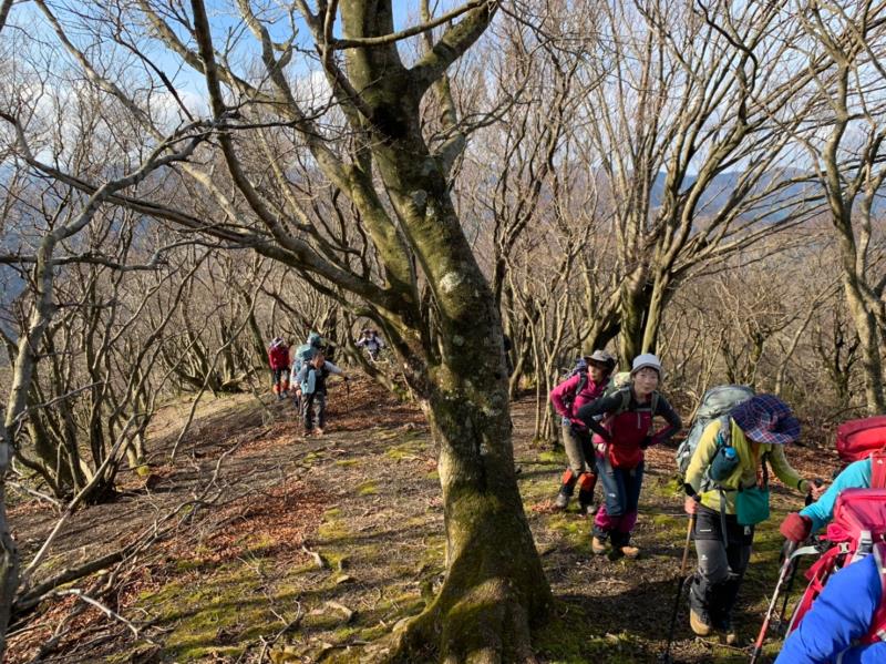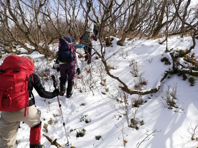 深い雪と戯れたいと企画した例会でしたが山頂付近にほんの少しだけ雪がありました。