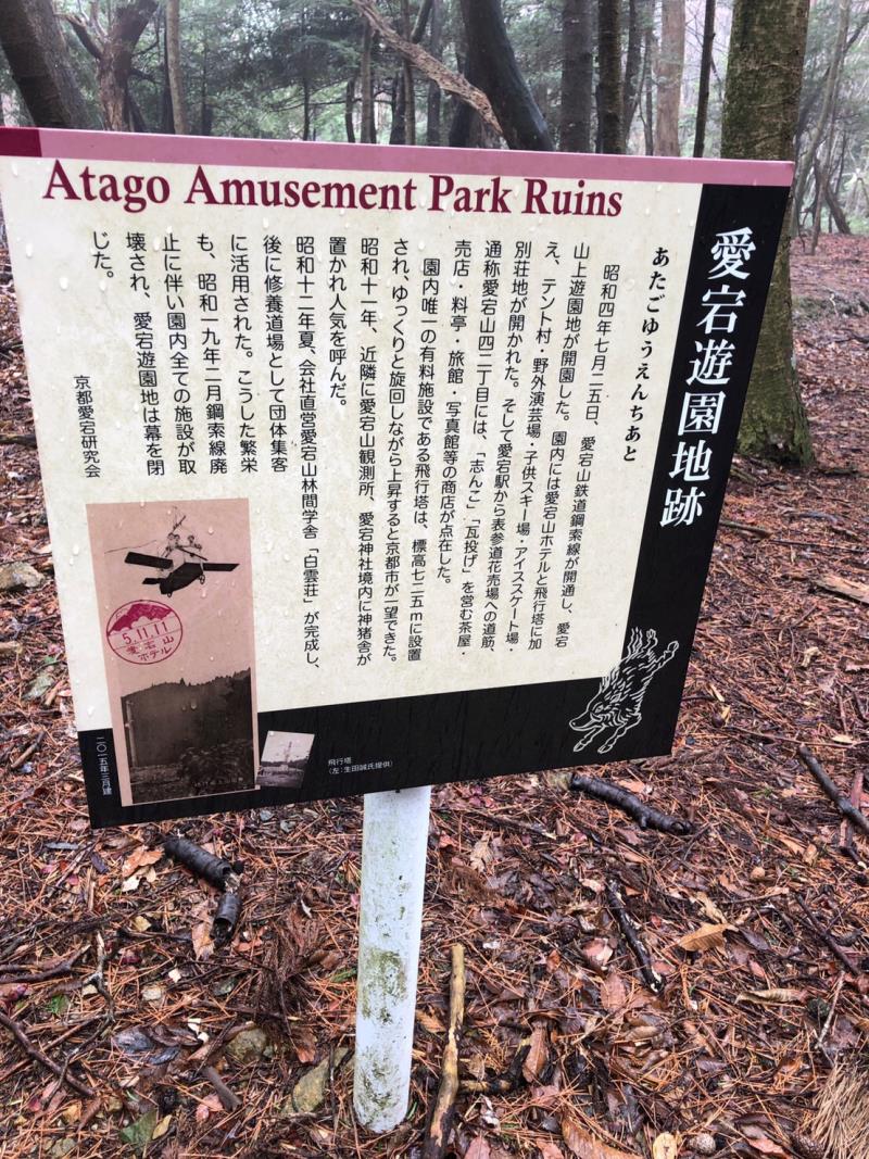 清滝表参道登山口 → 5合目 → 尾根道 → 旧愛宕駅跡 → 旧愛宕ホテル跡 → 尾根道 → 黒門 → 愛宕神社