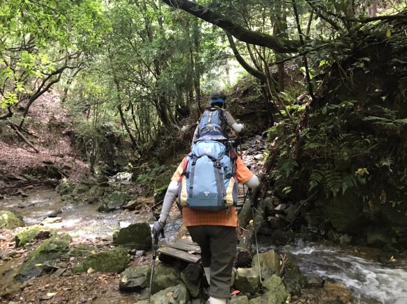 昼食後再び西山古道に戻る。沢伝いで涼しい下山になった。