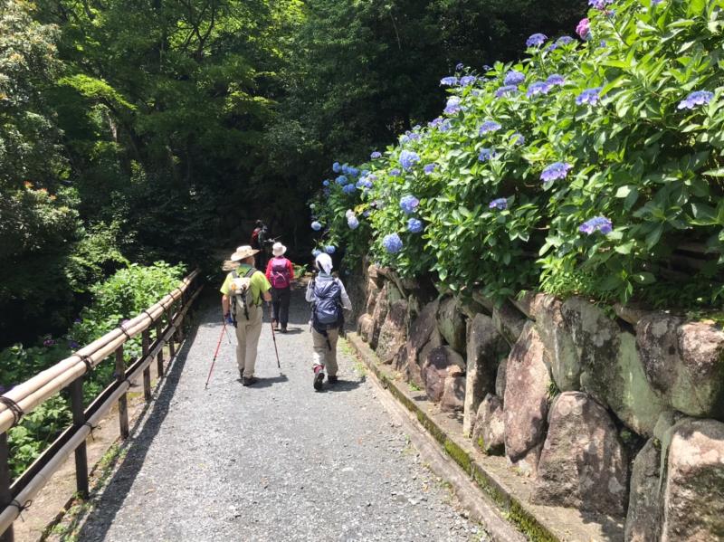 柳谷観音の入り口でリーダーから「ここからはマスクをつけましょう」と注意喚起があり有名な紫陽花を楽しんだ。