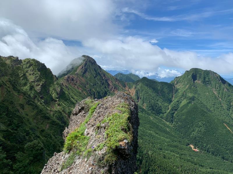 10日は快晴の中、小同心の快適クライミングでした。快晴の小同心は初めてでしたが、中々高度感の有る岩場でした。帰りは硫黄岳経由下山の予定でしたが、時間の関係で大同心ルンゼ経由の下山にしました。(T・Y)