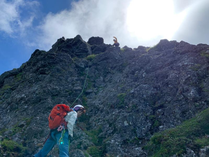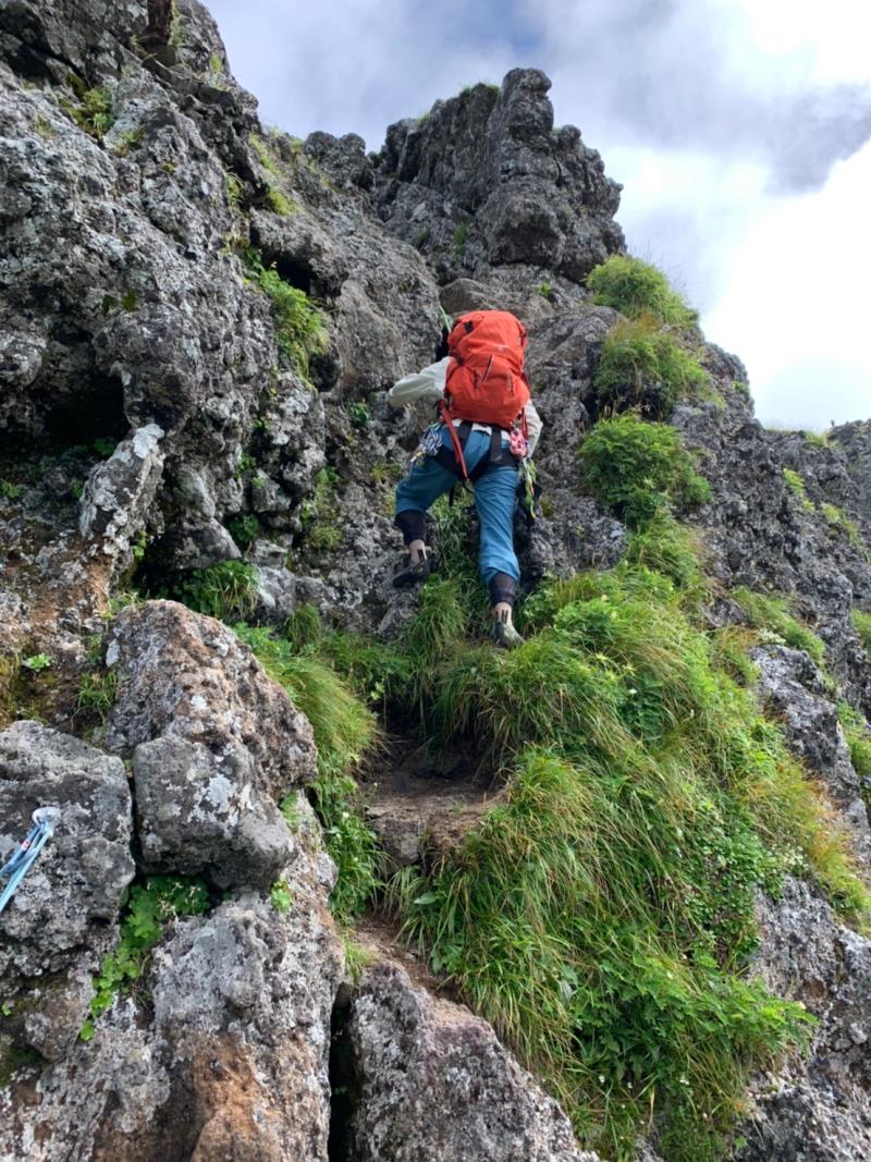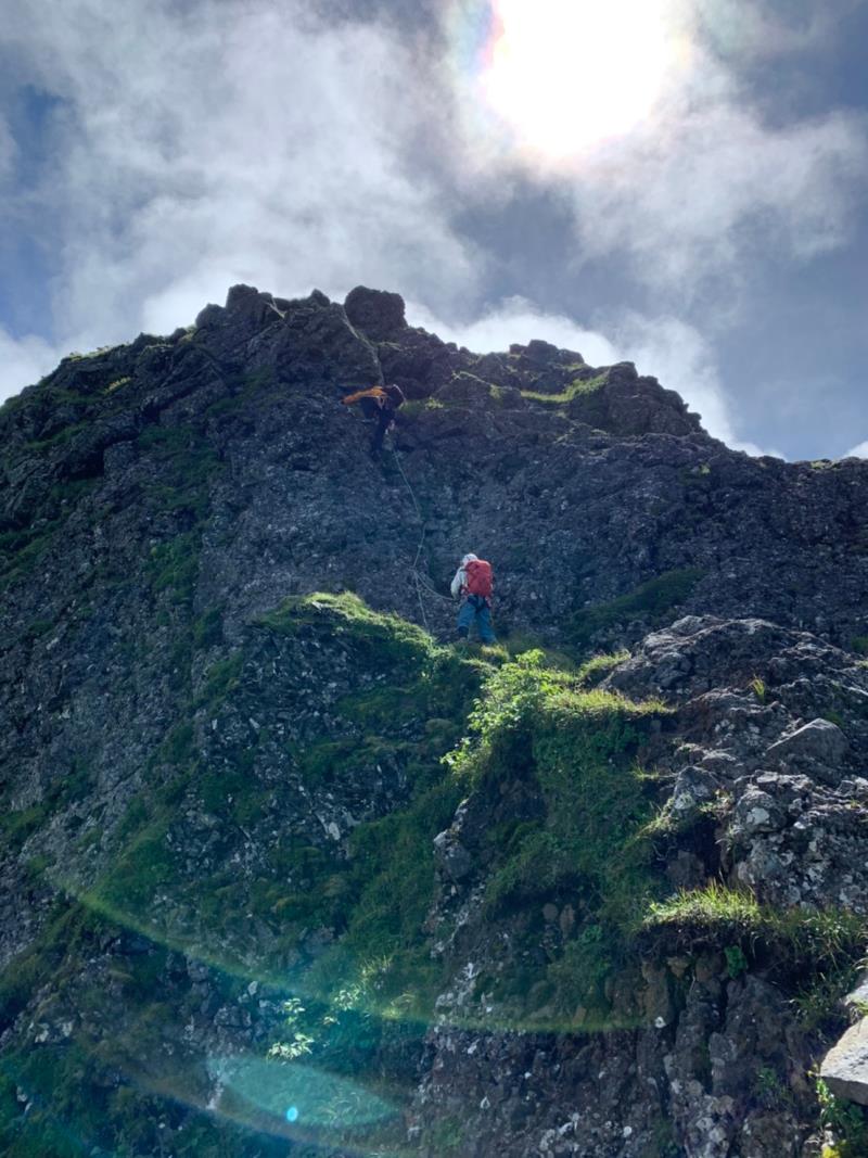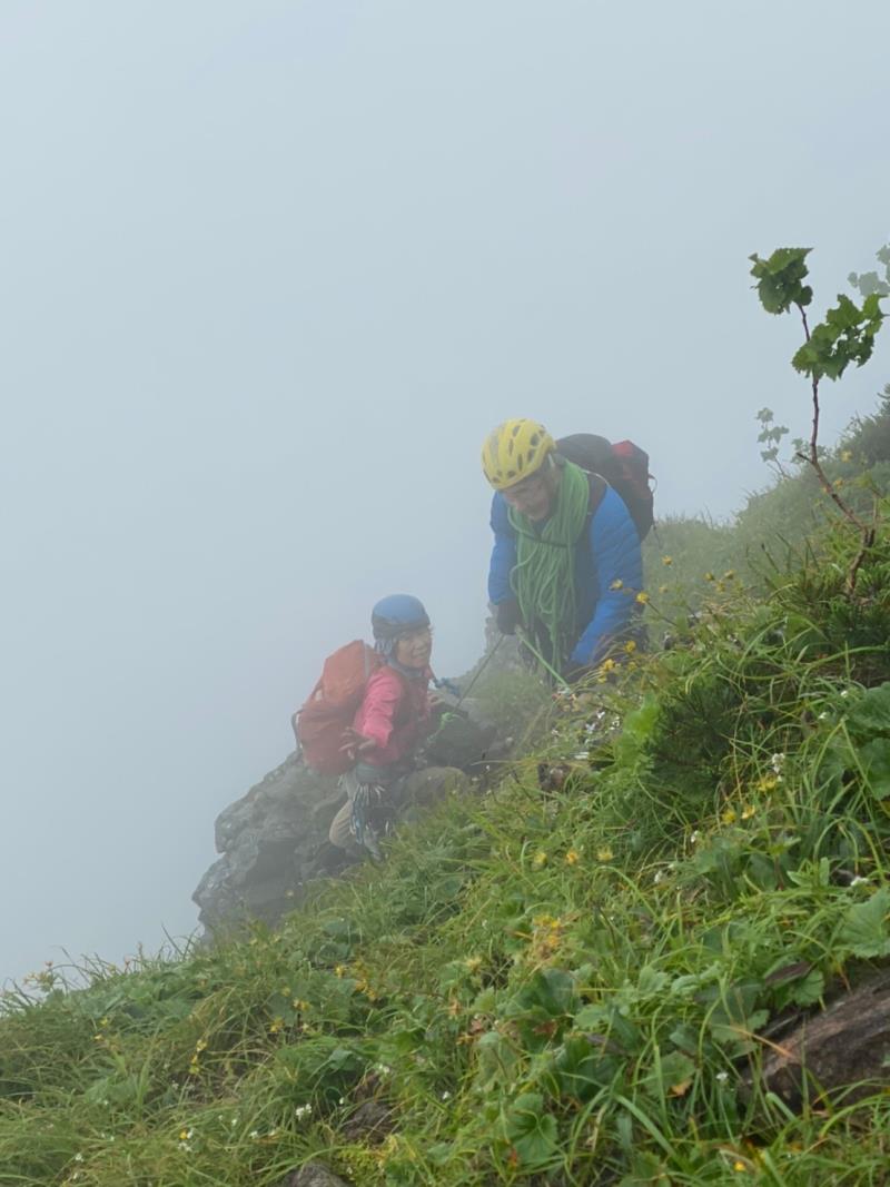 9日は生憎朝から強風とガスの中、中山尾根の登攀。
