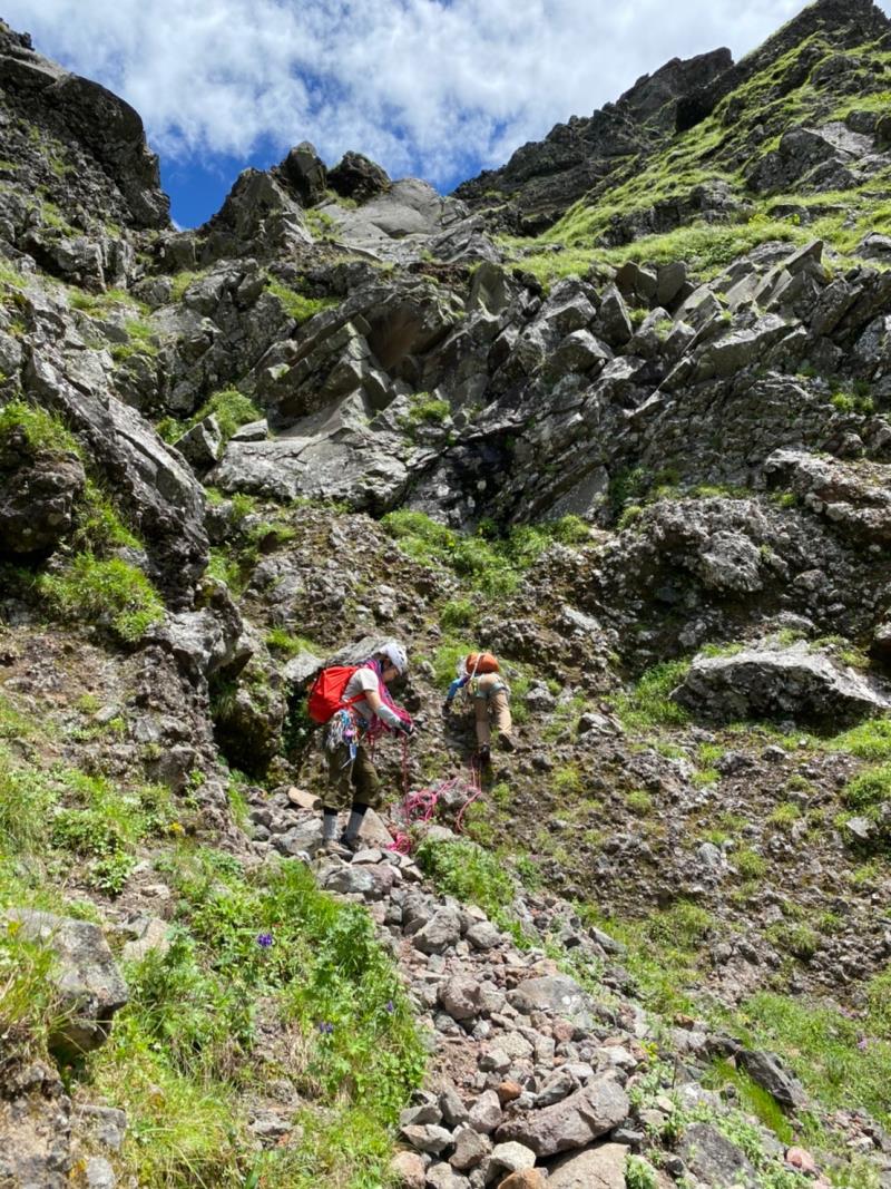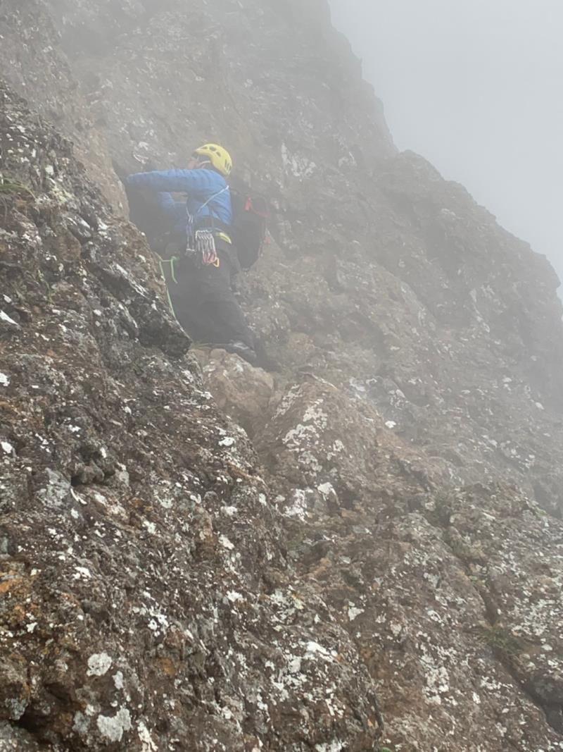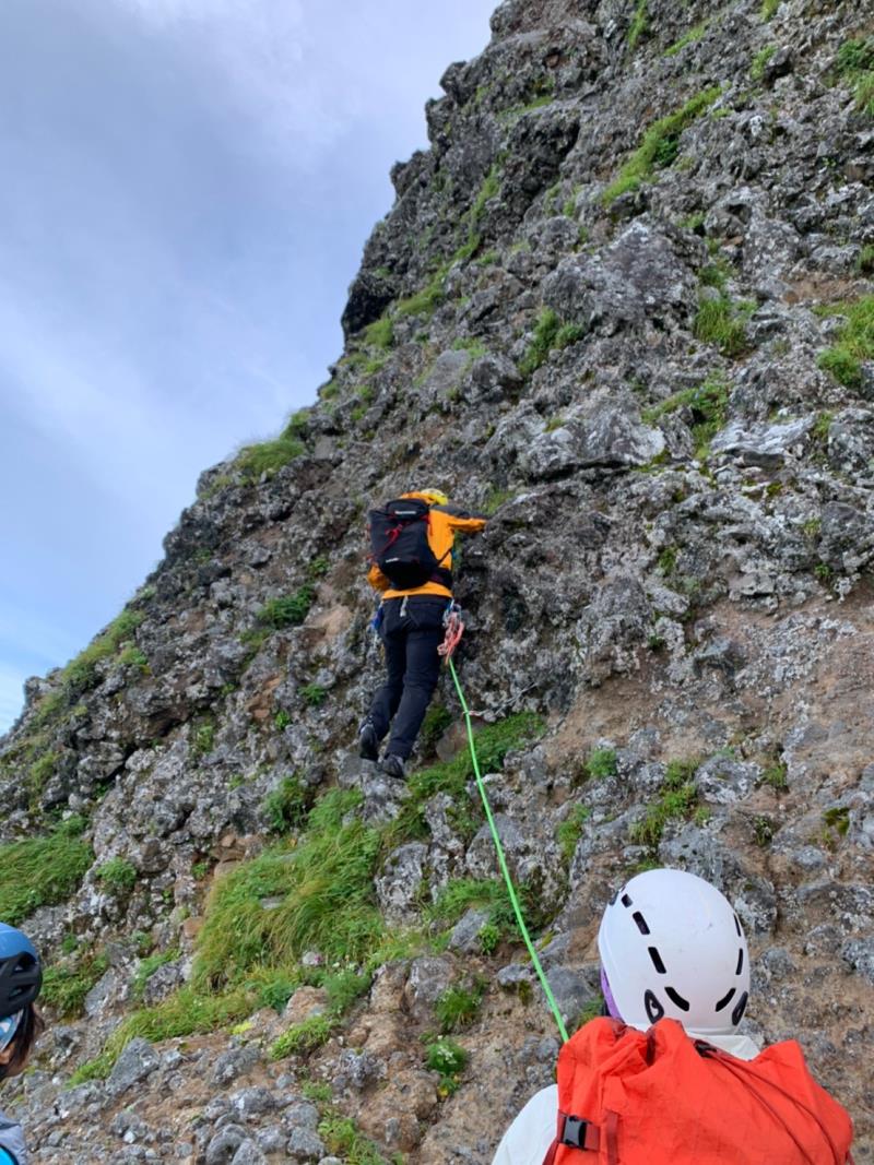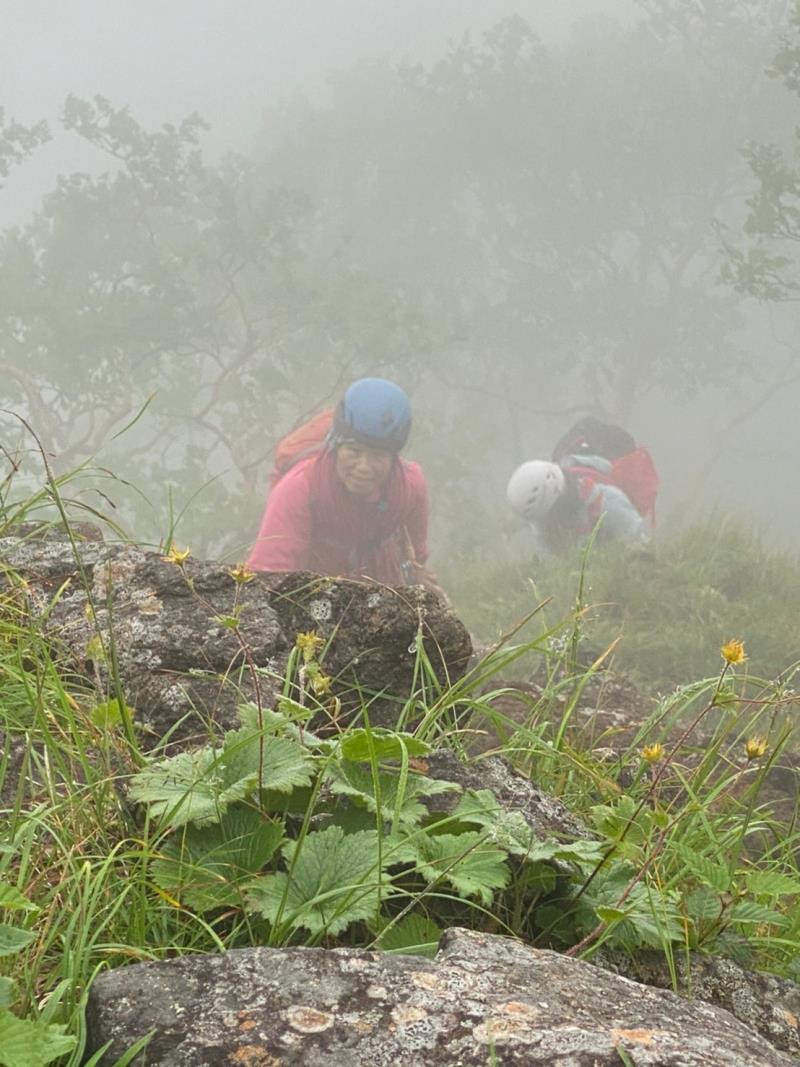9日は生憎朝から強風とガスの中、中山尾根の登攀。