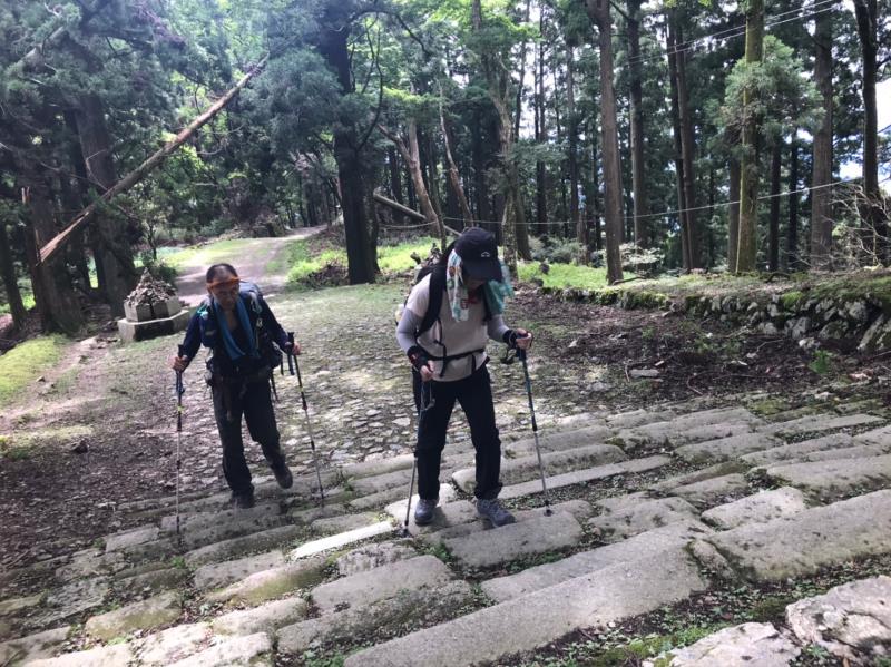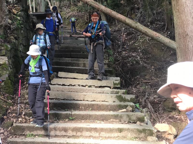 ストックを使った体重移動に重点を置いた歩き方を練習しながら、愛宕山の表参道を往復。