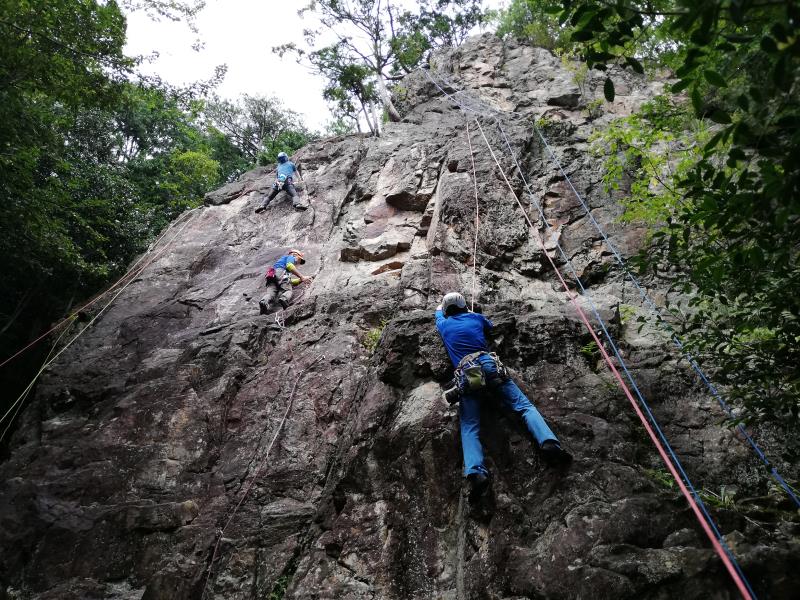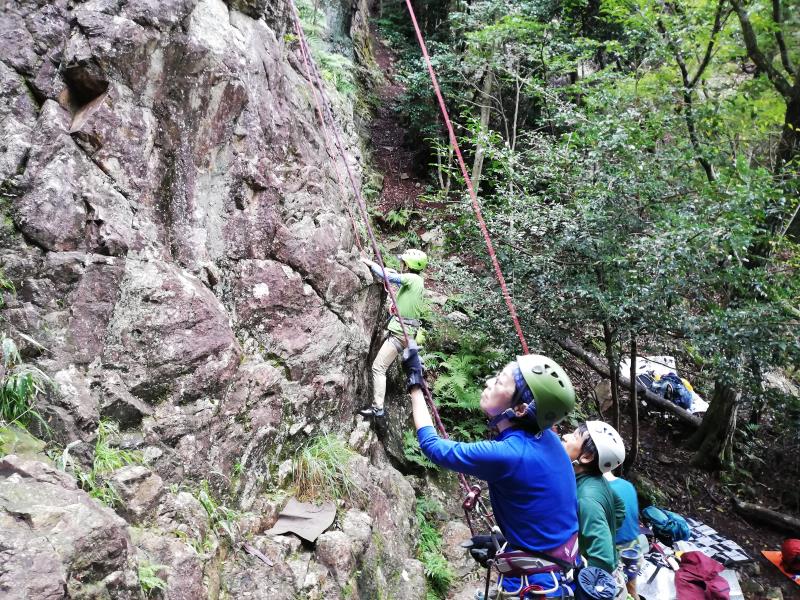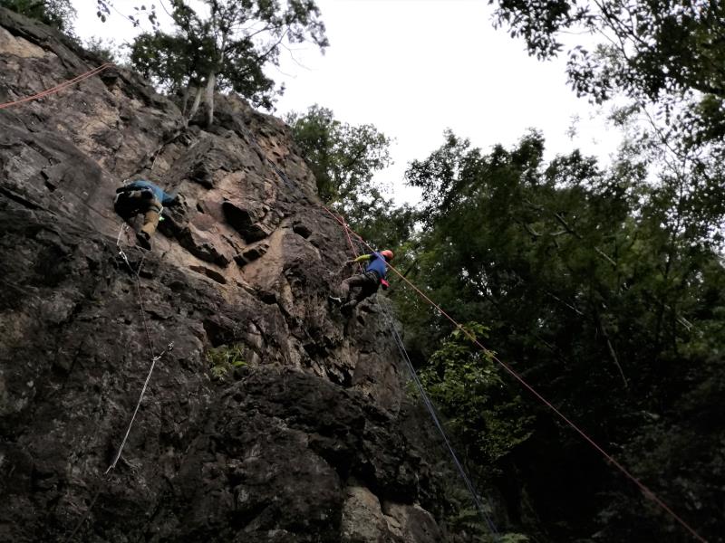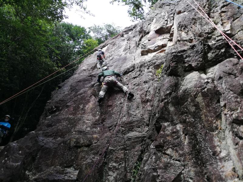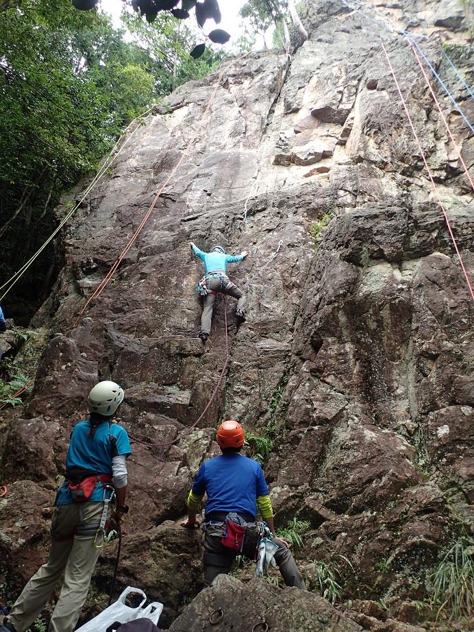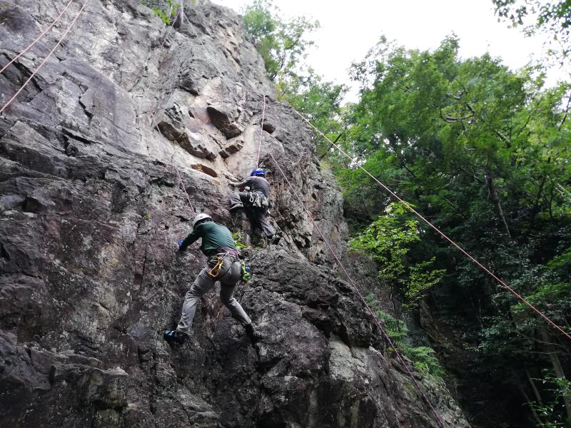 金比羅山での岩登り例会。人気のホワイトチムニーだったがメンバーが先行してチムニーとコーナーハングにトップロープを張ってくれ、ゆっくりとクライミングを楽しむことが出来た。