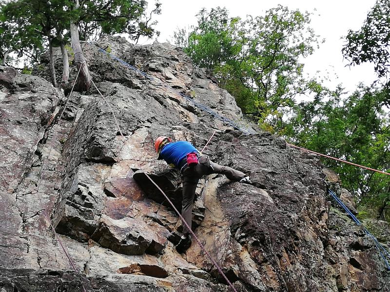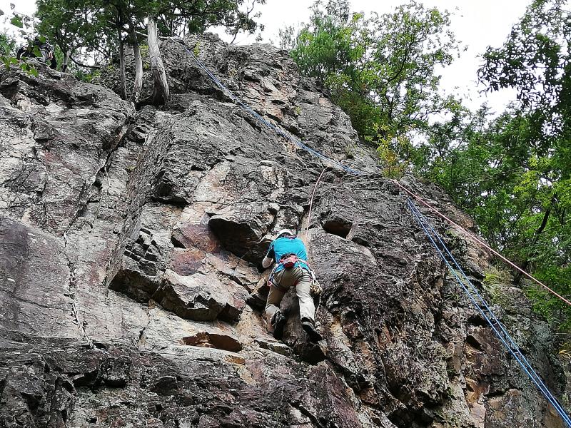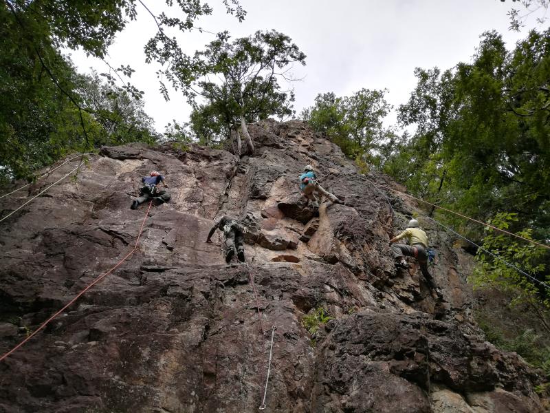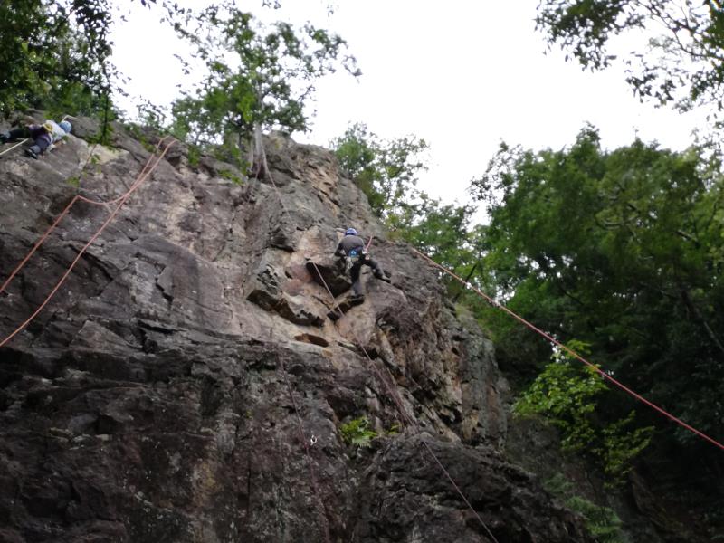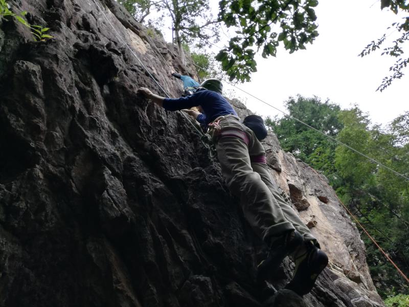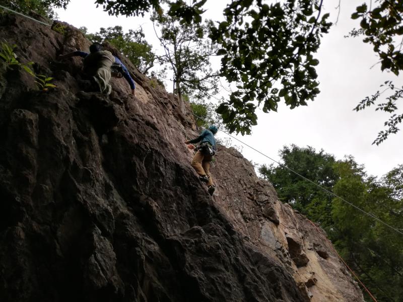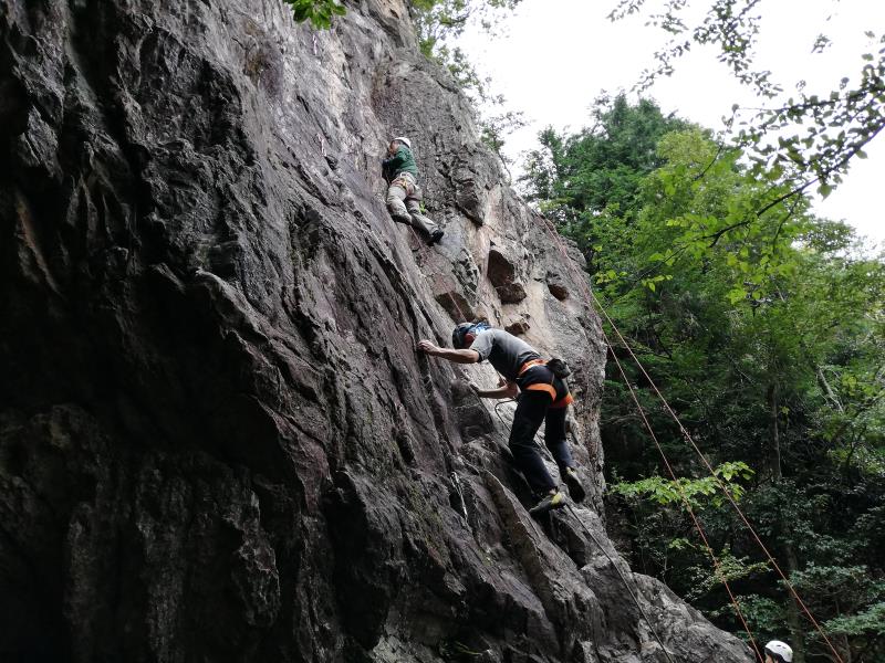 金比羅山での岩登り例会。人気のホワイトチムニーだったがメンバーが先行してチムニーとコーナーハングにトップロープを張ってくれ、ゆっくりとクライミングを楽しむことが出来た。