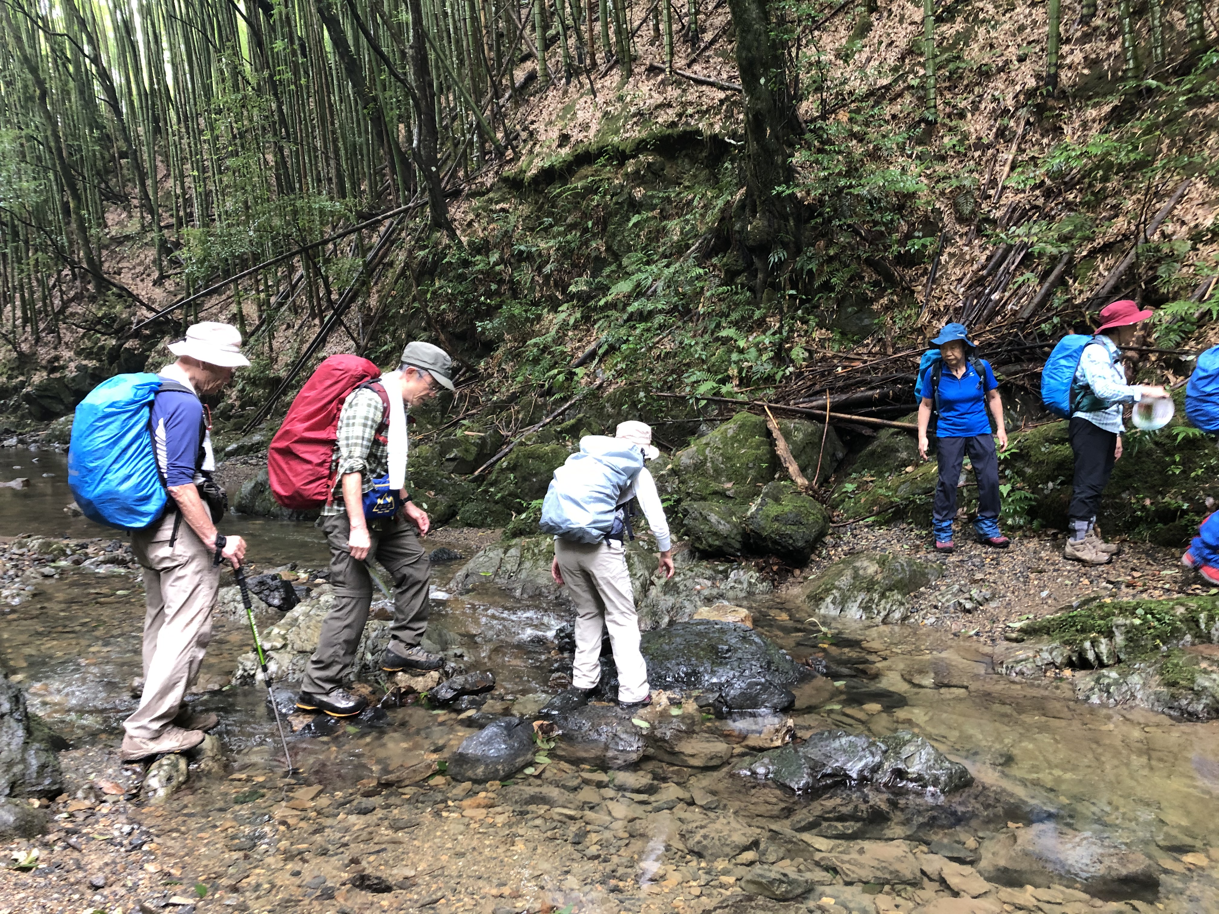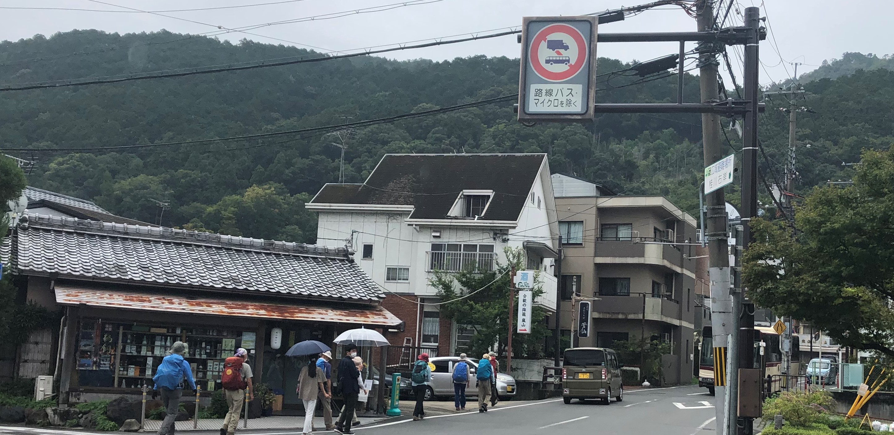 一日延期しました。この日も雨模様の中、嵐山駅を10名で出発。