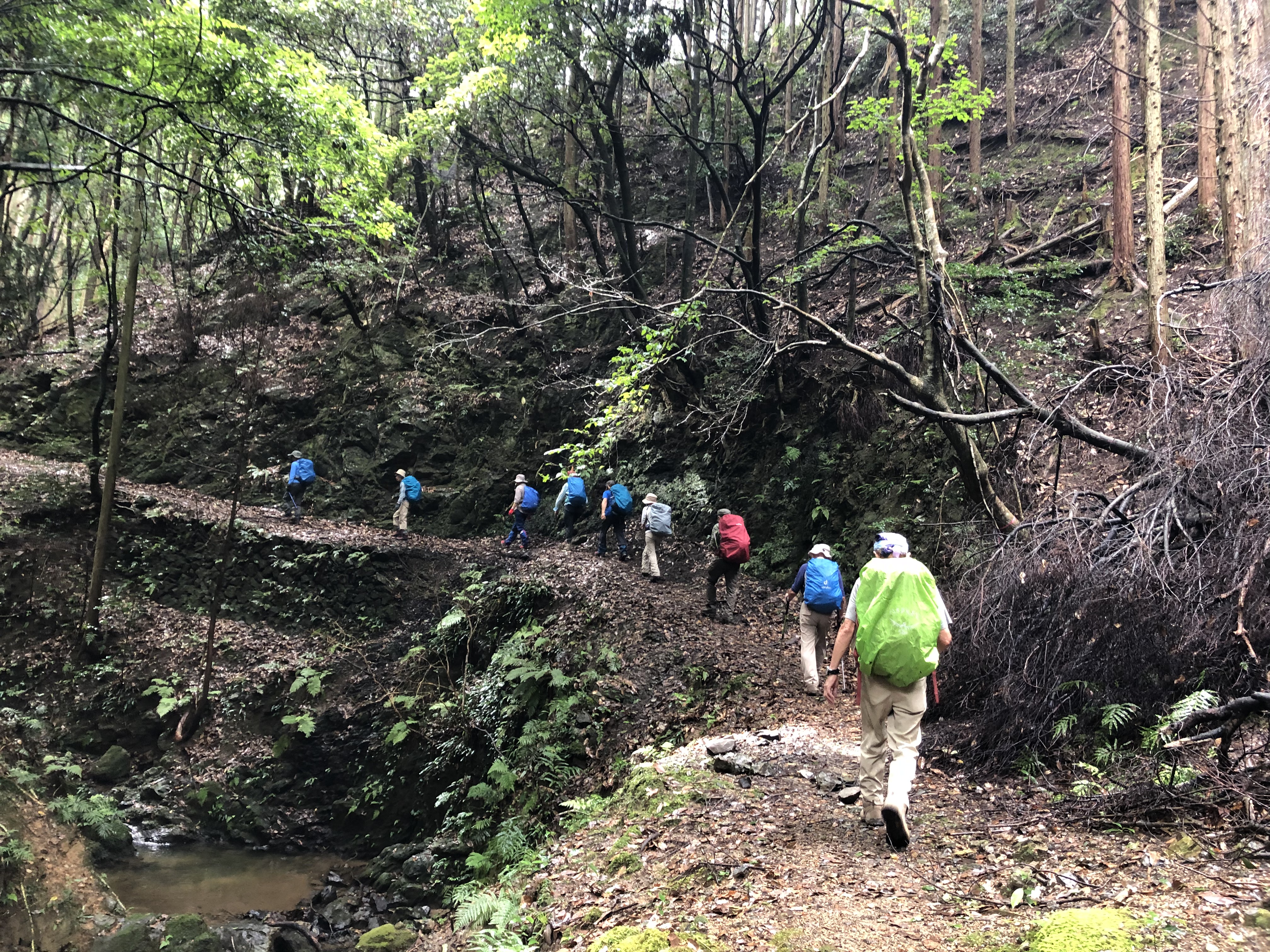 松尾山の四辻あたりから降り始めましたが、足元の良い京都トレイル道なので傘をさして歩けました。苔寺裏からは天気も回復、時折青空も見えてしかも涼しい日になりました。