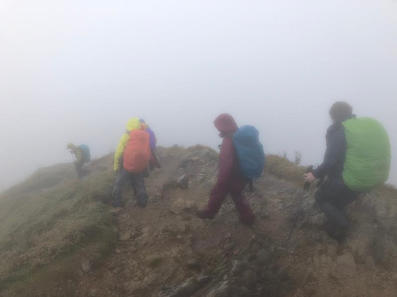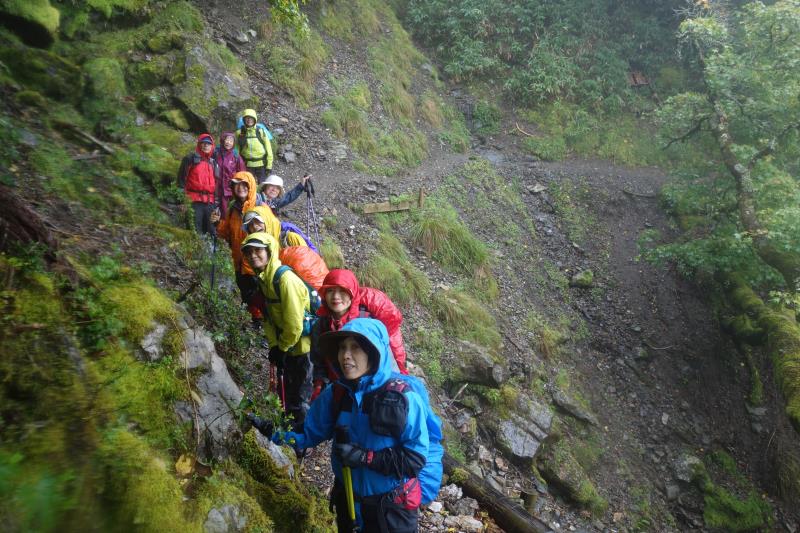 当日は長い稜線を堪能するはずだったが、天気予報に反しスタート直前に雨が降り始めた。