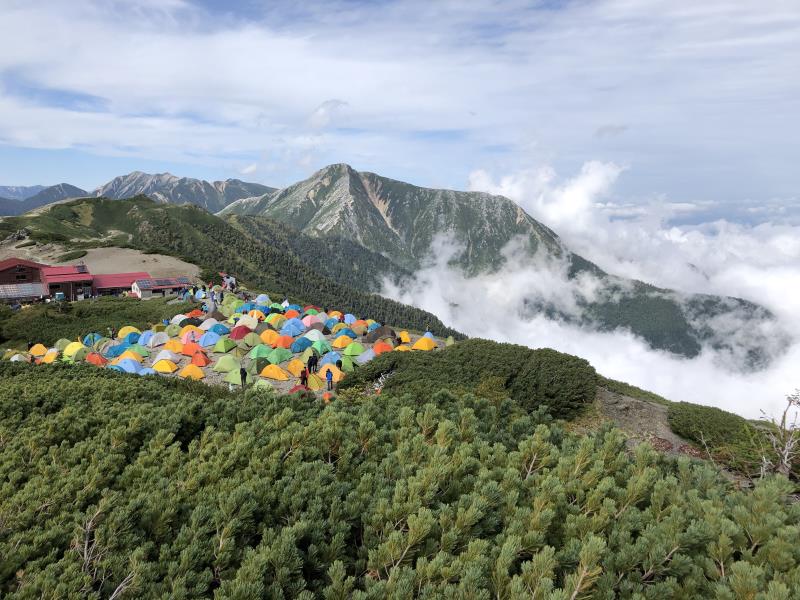この例会は昨年の台風等で実現できず、今回3度目にやっと実現できた。今回の計画では山小屋希望のメンバー1日目は常念小屋泊、2日目は蝶ヶ岳ヒュッテ泊の予定だったが、蝶ヶ岳ヒュッテはコロナ対策で予約できなかった。山小屋希望だった私はテン泊に変更、SさんとYさんは常念岳までの山行となったが、全員揃って念願の常念岳を踏むことが出来た。
