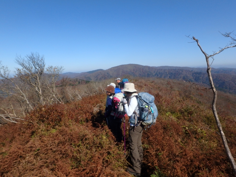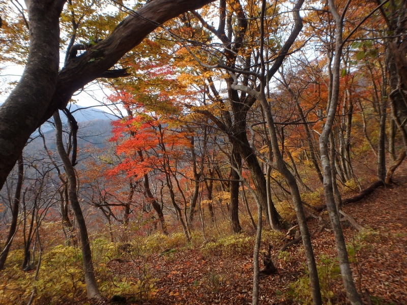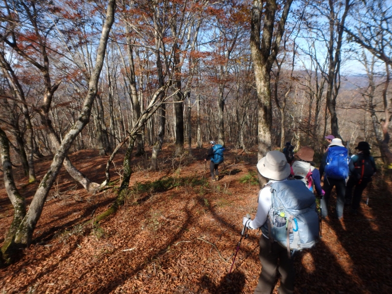 武奈ヶ嶽・三重嶽例会 2016年11月13日 最終更新日時 : 2024年10月3日 MM 山行サマリー summary 山域(カテゴリー) 比良山系 タグ(ジャンル) ハイキング Tweet Pocket 2016年11月13日 武奈ヶ嶽・三重嶽例会 (滋賀県北部) 来週19日からの劔岳登山に向けてのボッカを兼ねて、湖北武奈ヶ嶽から三重ヶ嶽登山でしたが約半数はかなり重荷のリュックでした。 ダムからの急坂を上がり武奈ヶ嶽に山頂付近は見晴らしが良い三十三間山から小浜湾が良く見える。何度かのアップダウンで三重ヶ嶽に大きいブナ林が見事です、紅葉を期待していたが、山頂付近は残念ながら落葉が激しかった。