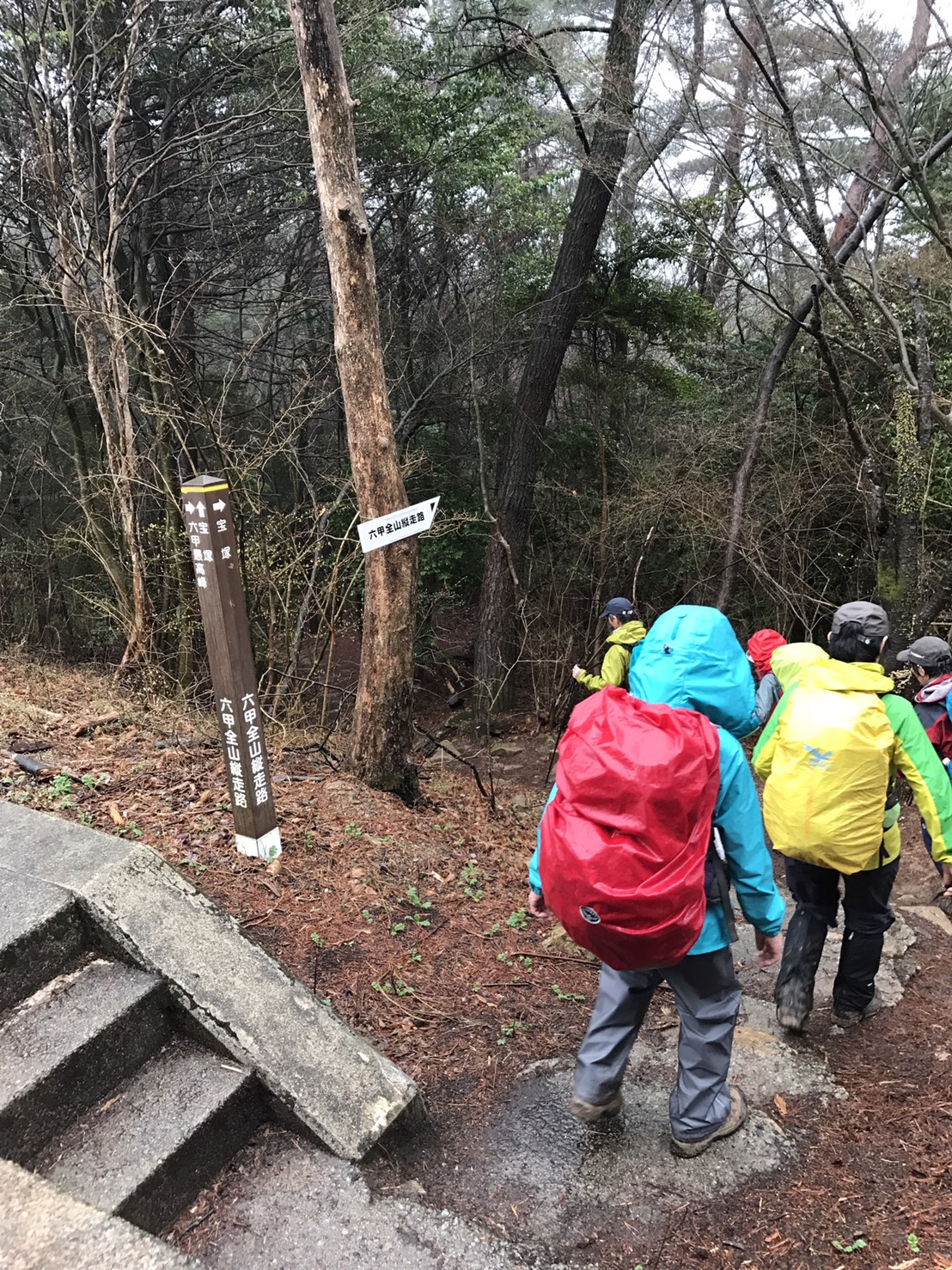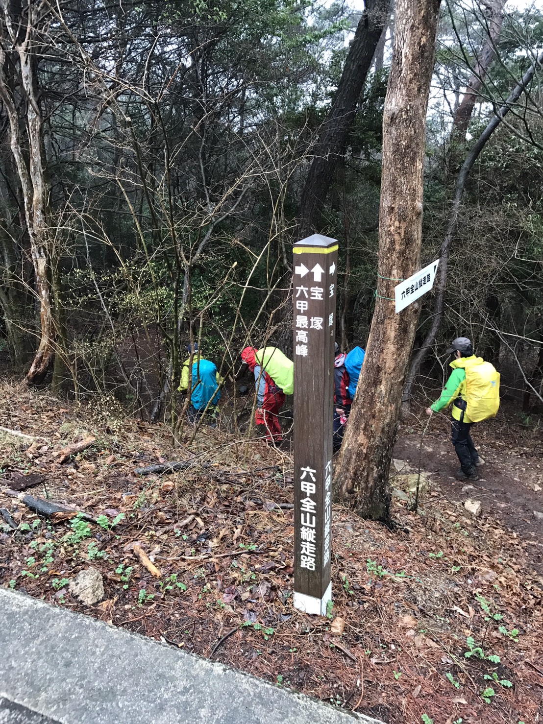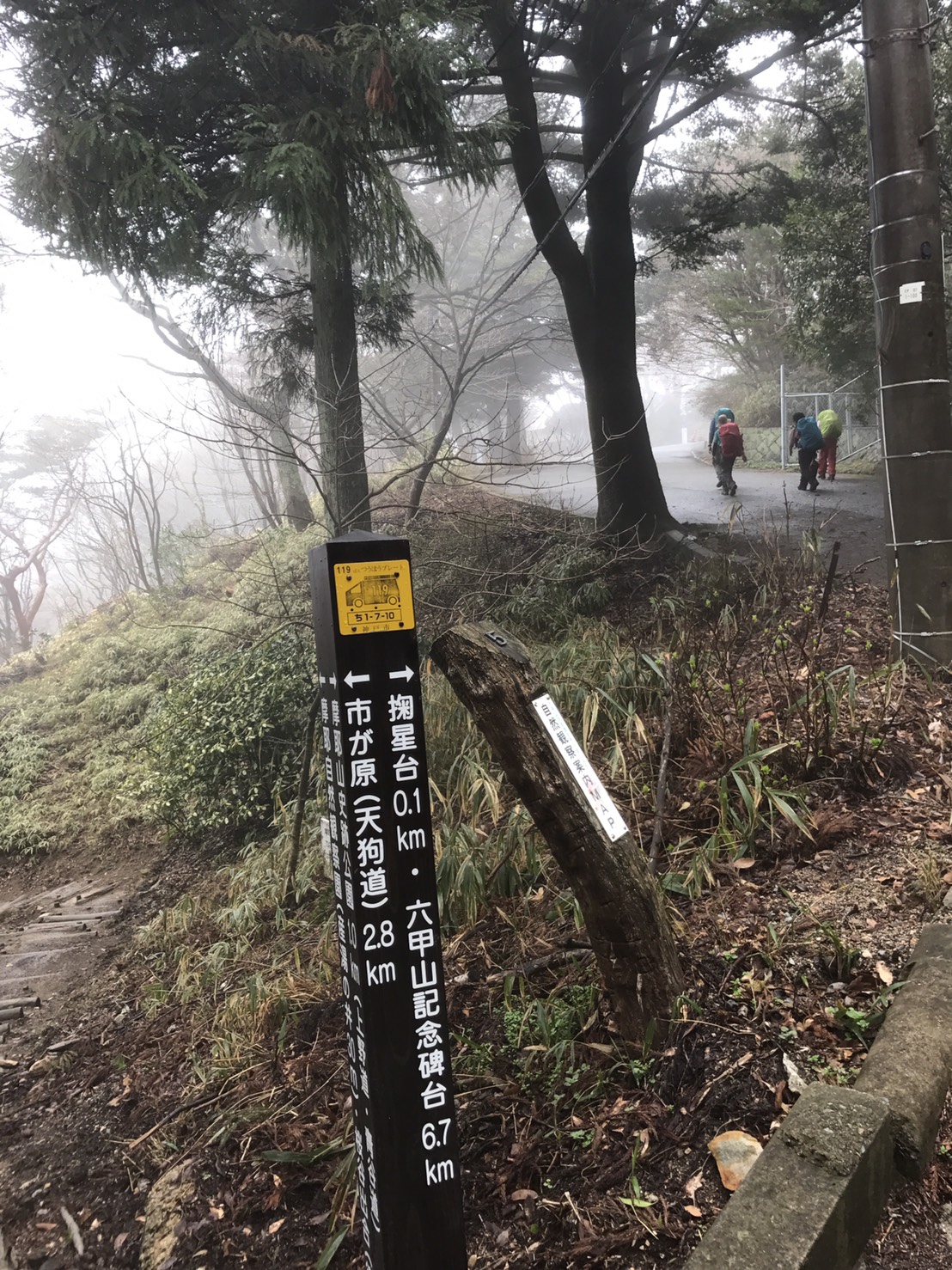 曇り空の下、JR三ノ宮駅を出発、市ケ原で休憩し、ぽつぽつ降ってきた雨の中、掬星台まで登り、長めの休憩を取りました。東屋で宴会の準備をしているグループを(うらやましく)眺めながら、六甲最高峰を目指しました。最高峰に到着して、宝塚までの標識が約17.5kmとなっていて、改めて本日2回目の登山に出発の気分でした。宝塚到着は予想より1時間ちょっと早く、なぜかと後で調べたら、実際の距離は12.5kmでした。納得。