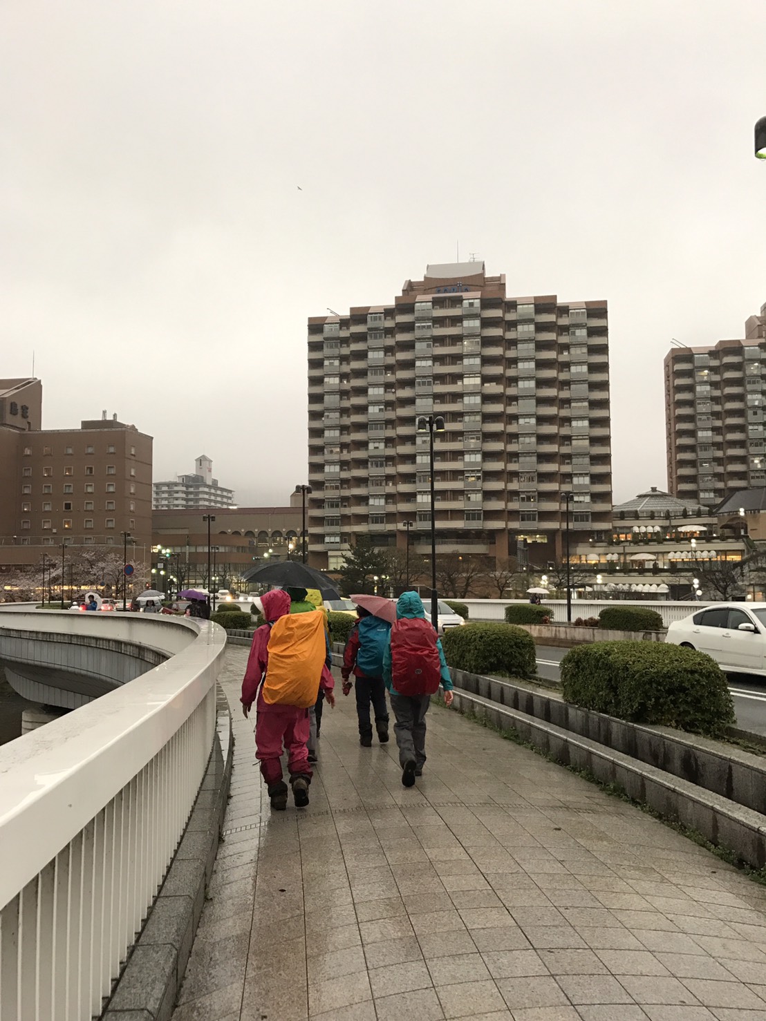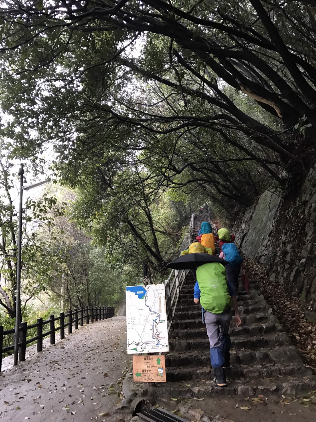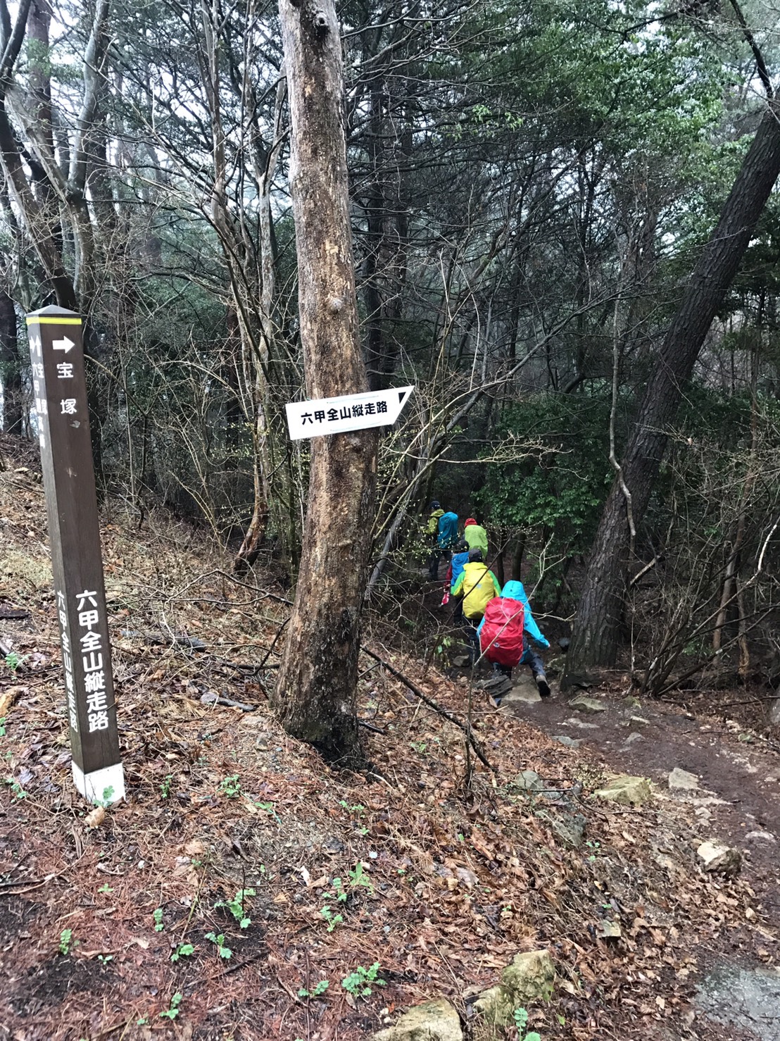 曇り空の下、JR三ノ宮駅を出発、市ケ原で休憩し、ぽつぽつ降ってきた雨の中、掬星台まで登り、長めの休憩を取りました。東屋で宴会の準備をしているグループを(うらやましく)眺めながら、六甲最高峰を目指しました。最高峰に到着して、宝塚までの標識が約17.5kmとなっていて、改めて本日2回目の登山に出発の気分でした。宝塚到着は予想より1時間ちょっと早く、なぜかと後で調べたら、実際の距離は12.5kmでした。納得。