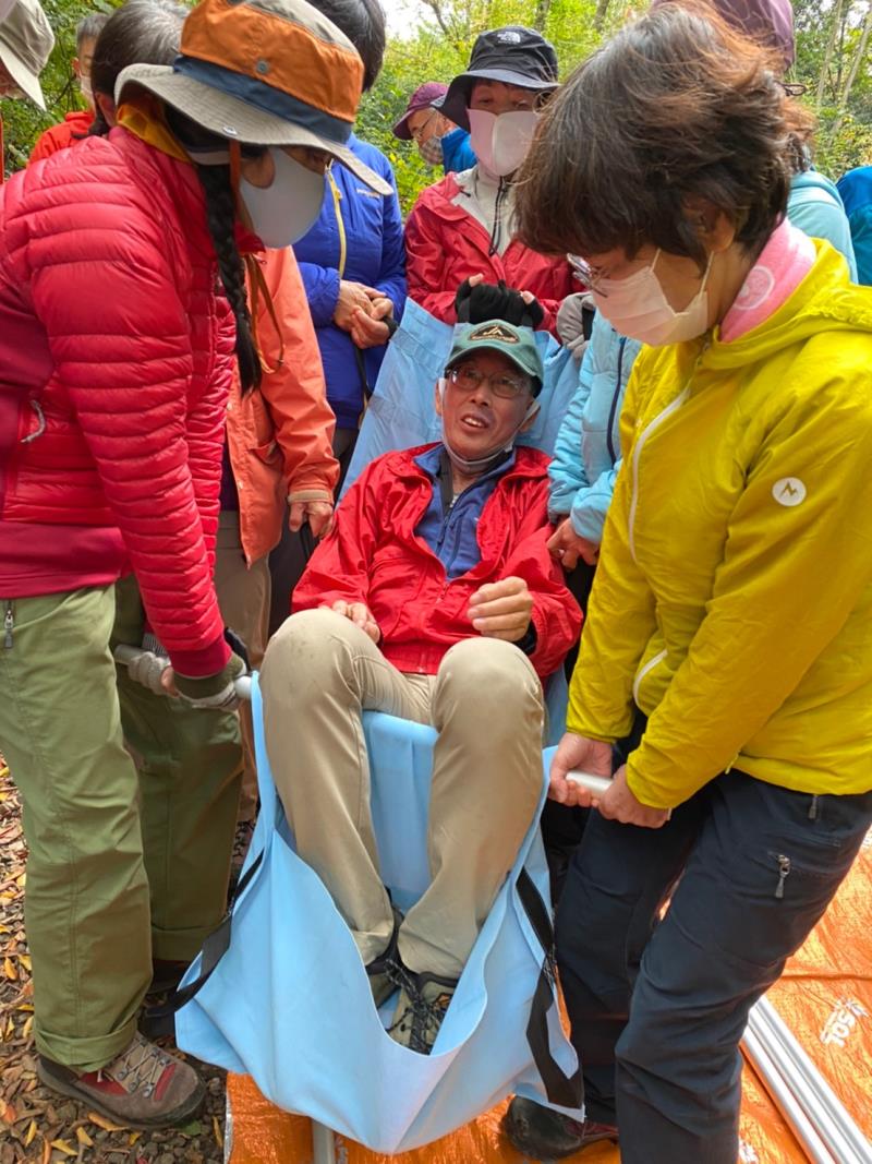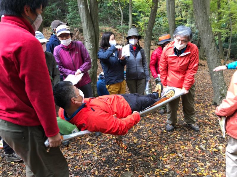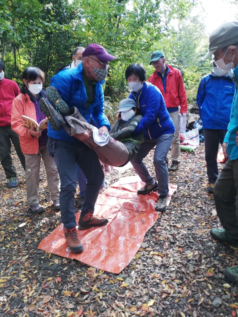 今回の例会の目的は搬送などを通じて、山で事故を起こすと大変だということを体感してもらいたかったという事です。