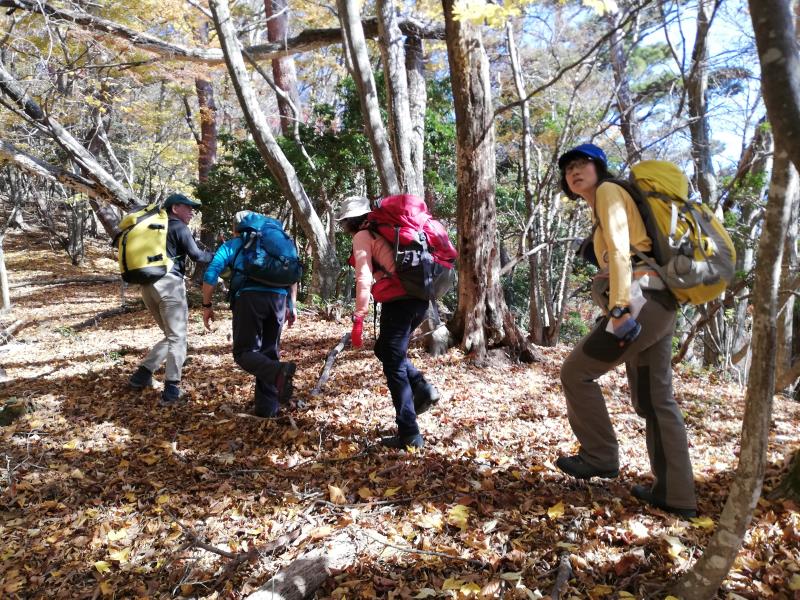 でも日本コバを永源寺ダムから登り白鹿背山の方へ周回するような物好きはほとんどいない。今日は趣味登の屈強な女性陣が集まり、神様も恐れをなしたのか、素晴らしい秋晴れ。