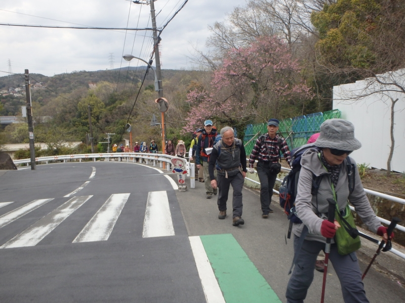 生瀬駅を出発し、高台の住宅地の中を一気に登り詰め登山道へと入る。さっそく衣服調整。今日は、暖かくなりそうだ。