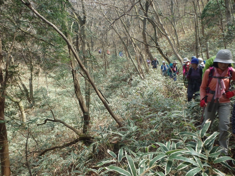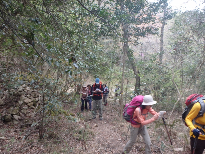 町中はサクラ満開だが、六甲山のミドリはまだつぼみのままでもう少し待たないと春の装いを見せてくれない。春を見つける例会となった。例会ルートの一部を変更した。下見した際下山ルートであるナガモッコク尾根の状態が芳しくなかったため 六甲縦走路をもう少し西へ進み座頭谷を経由するルートに変更した。