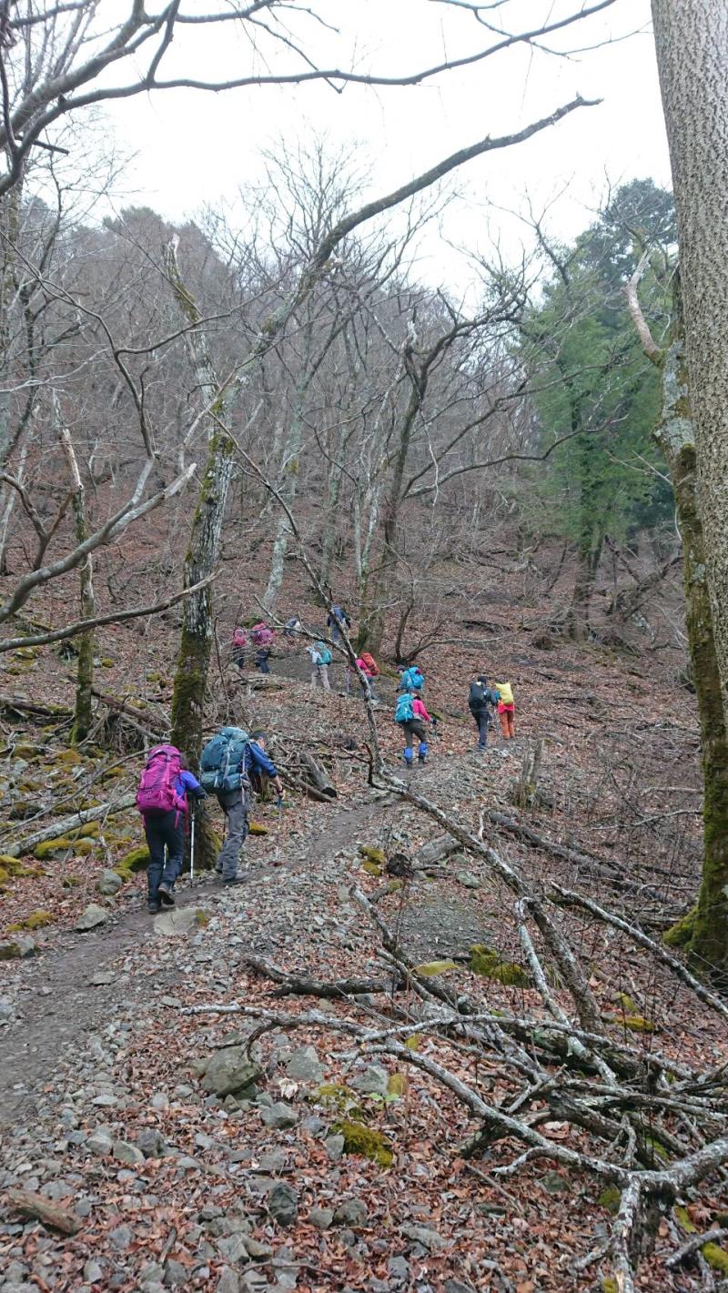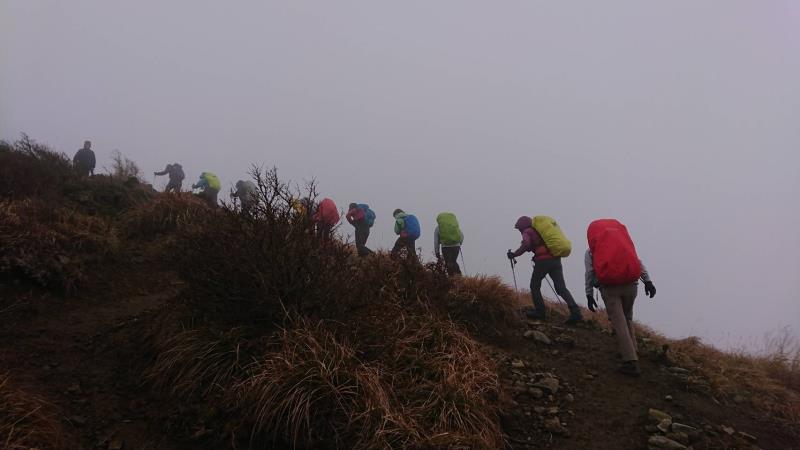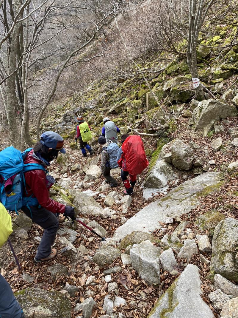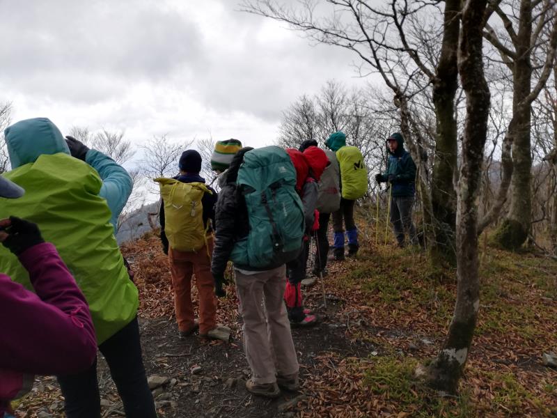 寒波到来には一足早く期待していた降雪こそなかったものの、みぞれ混じりの冷たい雨や強風に曝され、暖冬に慣れ切った身体を冬山に慣れさす良い機会となりました(M.M)