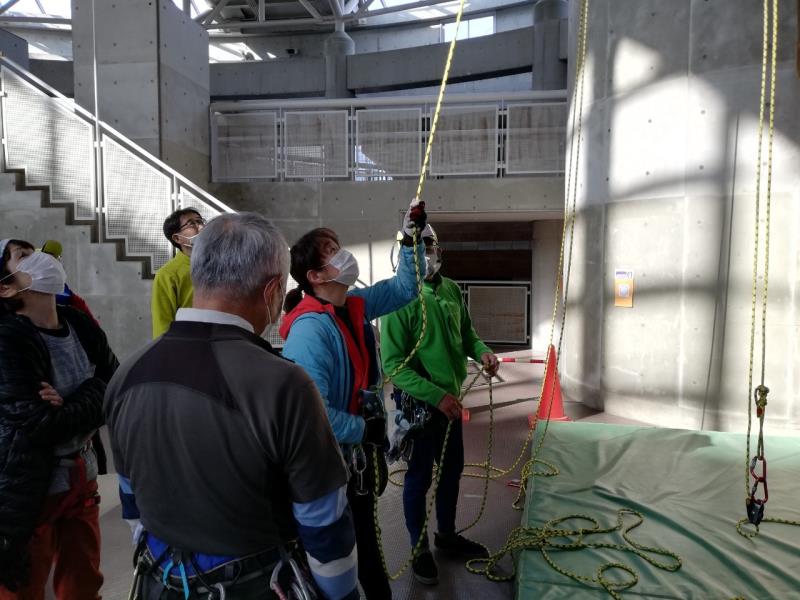 今回はリードクライミングとリードビレイが中心でしたが、クライミング時の事故が多いこともあり、まず、テキストを使ってビレイの基本の学習から始めました。