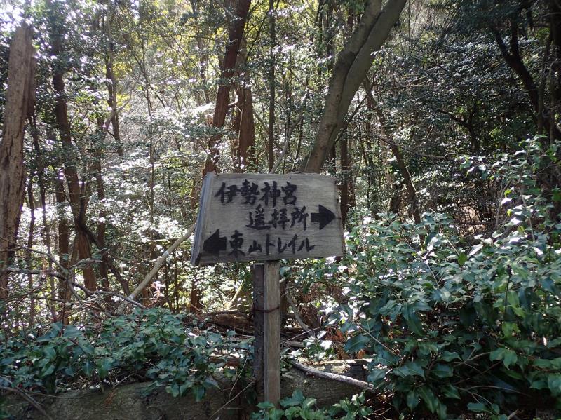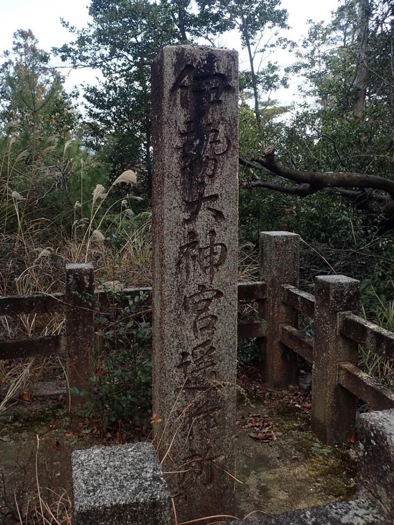 三角点から下山の途中に「伊勢神宮遙拝所」(この鳥居はまっすぐ伊勢神宮の方を向いているとされており、ここから直接伊勢神宮をお参りできる)に寄り道をして、伊勢神宮参拝まででき有意義な山歩きでした。