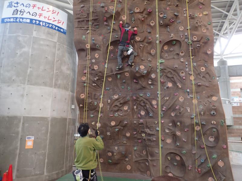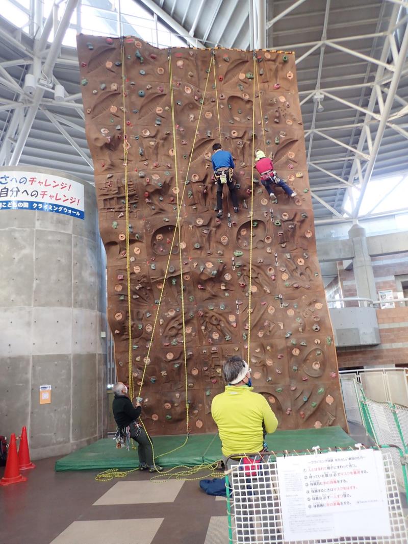 恒例の「こどもの国」のクライミングウォール(高さ9m)を使ってのリード登攀とリードのビレーの練習例会