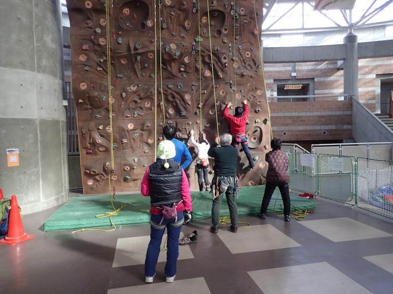 この日は寒波襲来のため気温が低く防寒対策をしてのクライミングになったが、参加者が比較的少なかったこともあって結構な本数を登ることができ、いい練習になりました。