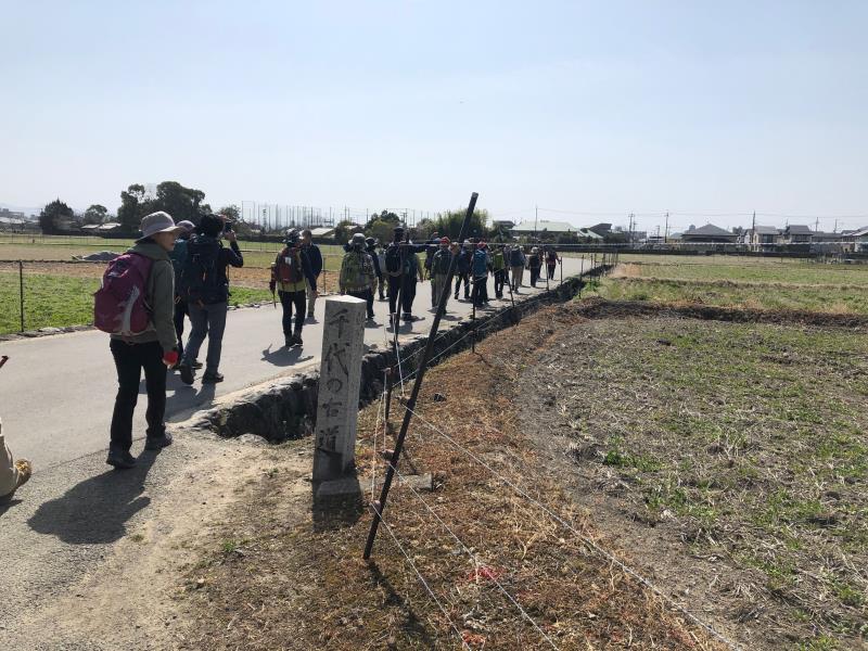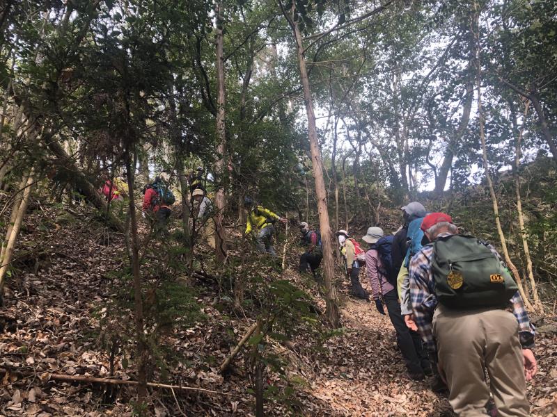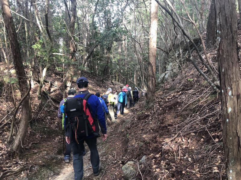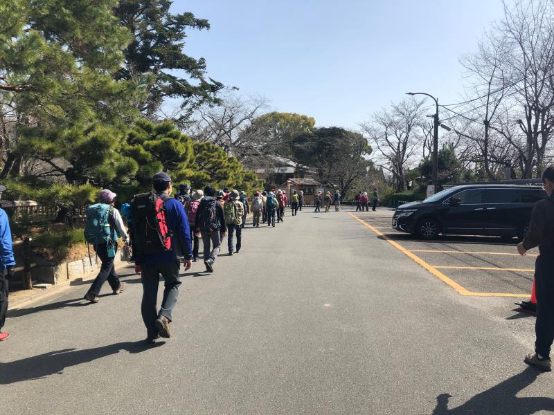 2021年3月17日(水) 毎年8月16日にご先祖の精霊を送る送り火の山々。一回目は京都盆地の西から東へ順に三山を巡ってきました。嵯峨鳥居本の曼荼羅山鳥居形松明、衣笠大北山の左大文字、そして西賀茂舟形万灯籠。火床は宗教行事の場でそれぞれの保存会の管理下にあるため、如意ヶ嶽大文字以外は立ち入ることはできませんが、奥山から、あるいは観光地の上に広がる火床を見上げるのも、うららかな春の日差しの中では、心地良いものでした。総行程21km、途中6kmは市バスのお世話になりながら、てくてく良く歩きました。途中バス停で待っていてくださった、Y.N.さん、左大文字から参加のM.Y.さんとM.O.さん、長いことお待たせしました。ご一緒出来て楽しかったです。途中参加・途中リタイア可の例会ですので、延べ33人のにぎやかな一日でした。