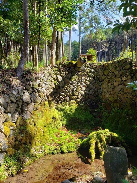 「和らぎの道」起点の駐車場から歩き始め、愛宕神社へ。全国の愛宕神社はここから分霊されたとか。年初1月9日の例会でここを訪れたときには境内の滝は凍っていたそうですが、
