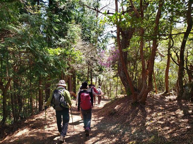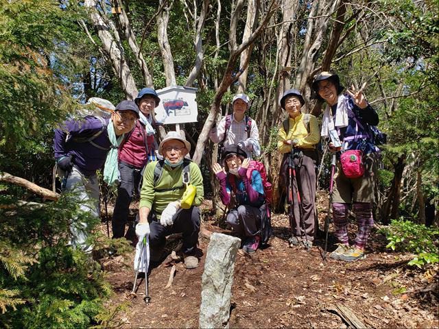 「牛松山ハイキングコース」は、名残の山桜やミツバツツジ、早めの新緑がとてもきれいでした。山頂639.2mでは今年の干支の丑にちなんだ牛松山登頂記念パネルをバックに
