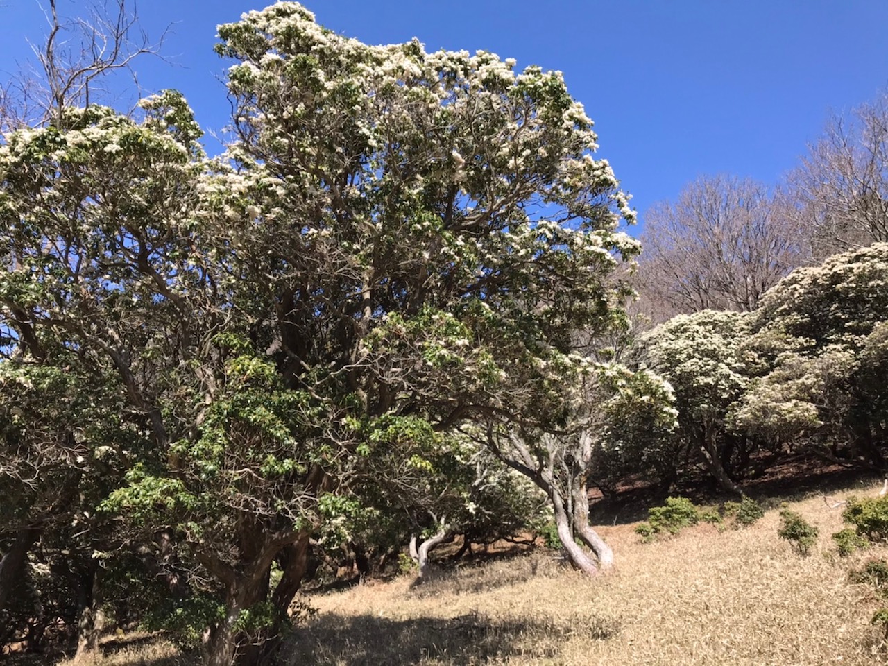入道ヶ岳山頂付近は、牧歌的な風景と馬酔木の群生からの甘い香りが漂い、何とも気持ちが良い!