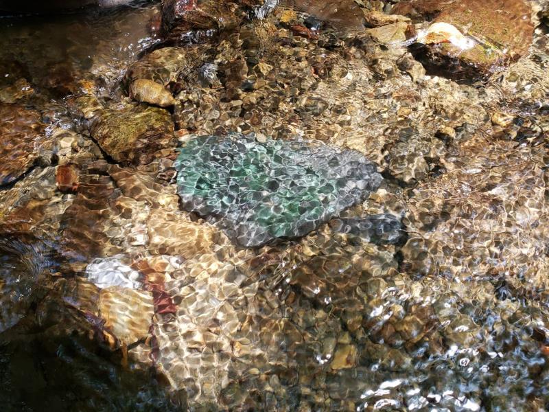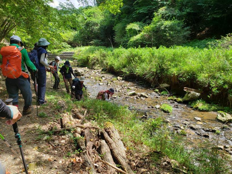 梅雨明け以来の真夏の太陽の下ながら、山の木漏れ陽はやわらかく、オオキツネノカミソリに出会いに行く、左へ右への渡渉の道のりはとても気持ちの良いものでした。