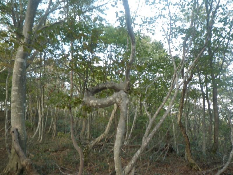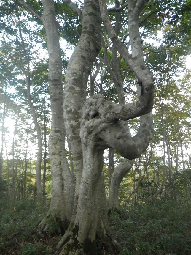 写真は曲がりくねったブナの木達です。湖北の厳しい自然が窺えます。