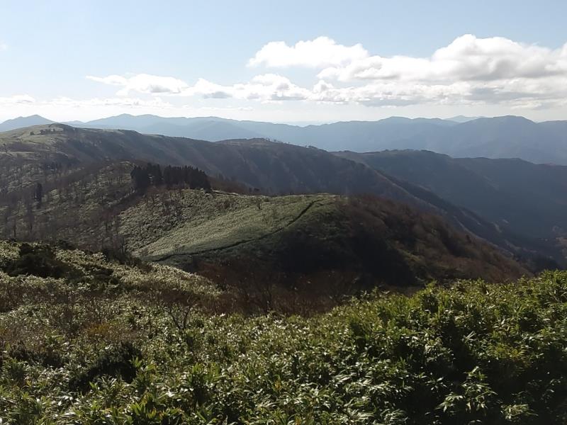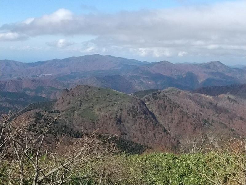 天候に恵まれ、暖かい日で頂上は人で溢れていました。登山口となる駐車場はたくさんの車が止まり、すっかり星1つのコースに変身をしていました。車での林道を走るのが好きで行きと帰りで違う林道を走行。帰りに走った林道は広葉樹が多くて、紅葉シーズンを満喫しました。頂上から眺めた三の丸への稜線を歩いてみたくなり、次は縦走を計画したい。