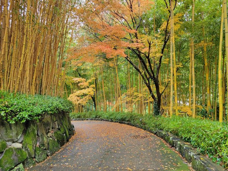 阪急東向日駅→竹の径を通り(途中に寺戸大塚古墳)→洛西ニュータウン完成と同時にできた京都市立洛西竹林公園→大正時代にできた大蛇が池の公園→大原野の農道を通り→明治時代にできた明治池→小塩バス停(ここで男性をお見送り)→いざ、光明寺へ(何しろ、5日までは紅葉期の特別入山1000円と、昨年500円より一気にUP、無料になった今日行かねばと、女3人頑張ります)。