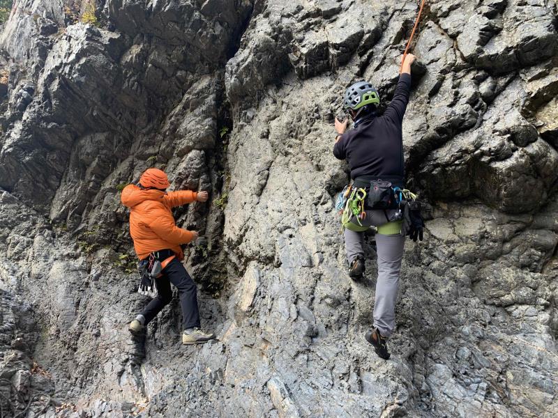 納山会前の例会として2回目となる落合の岩場のクライミングを開催しました。