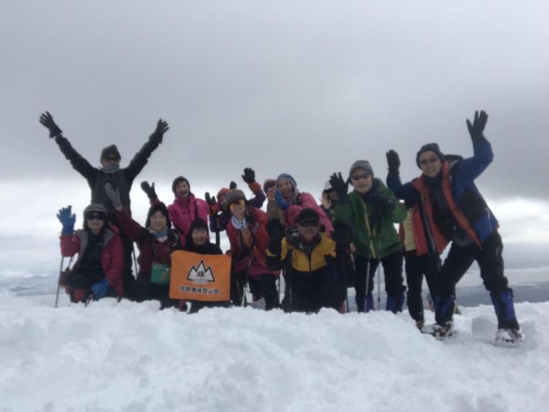 急登深雪のラッセルの経験者が少なく40mほどの登りを悪戦苦闘しながら雪山初級では体験できない体験をし尾根に出た時は全員汗だく。