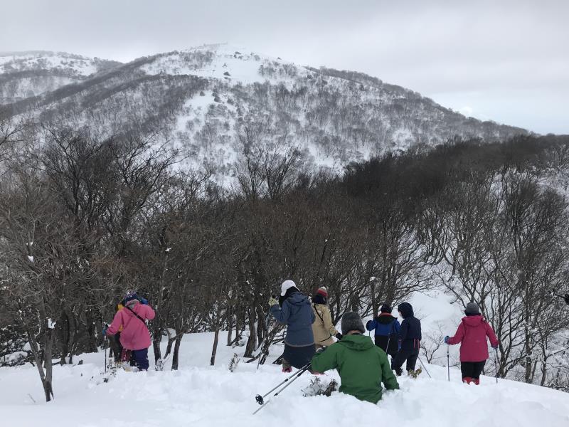 1時間ほど雪面を歩き回り下山へ。今回は初心者にも新雪の雪山を堪能した例会となりました。