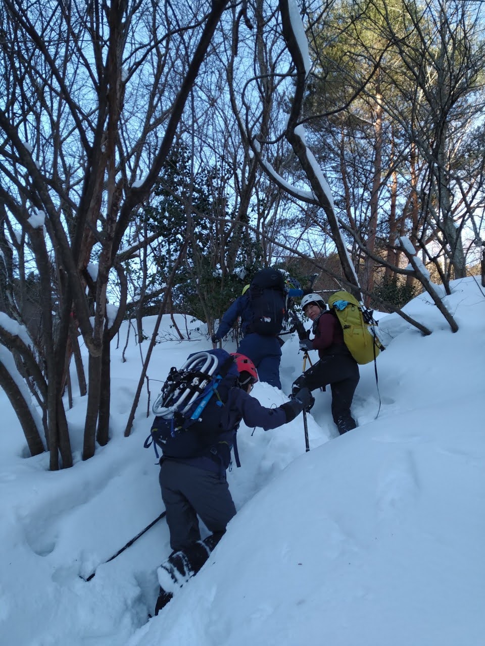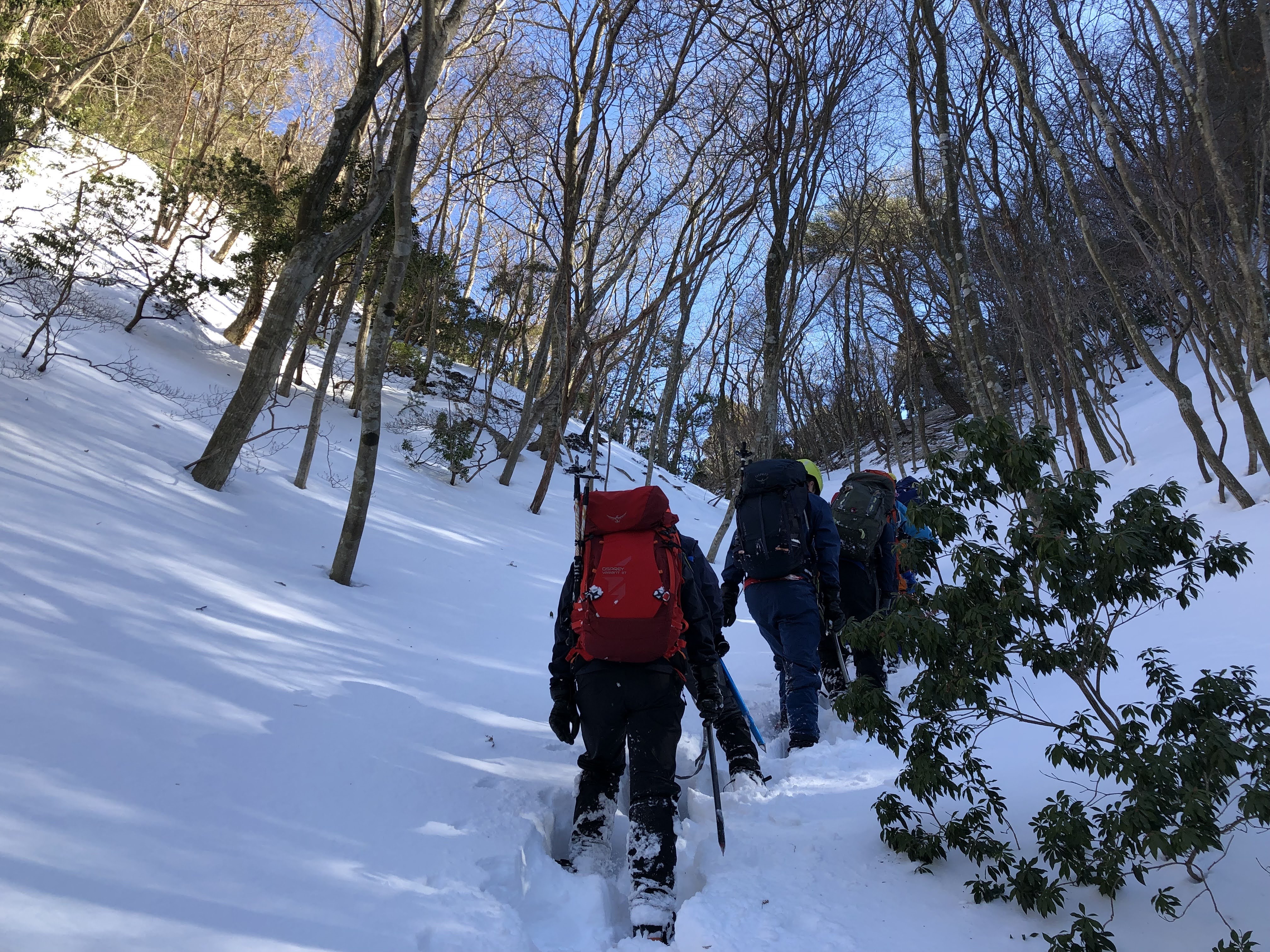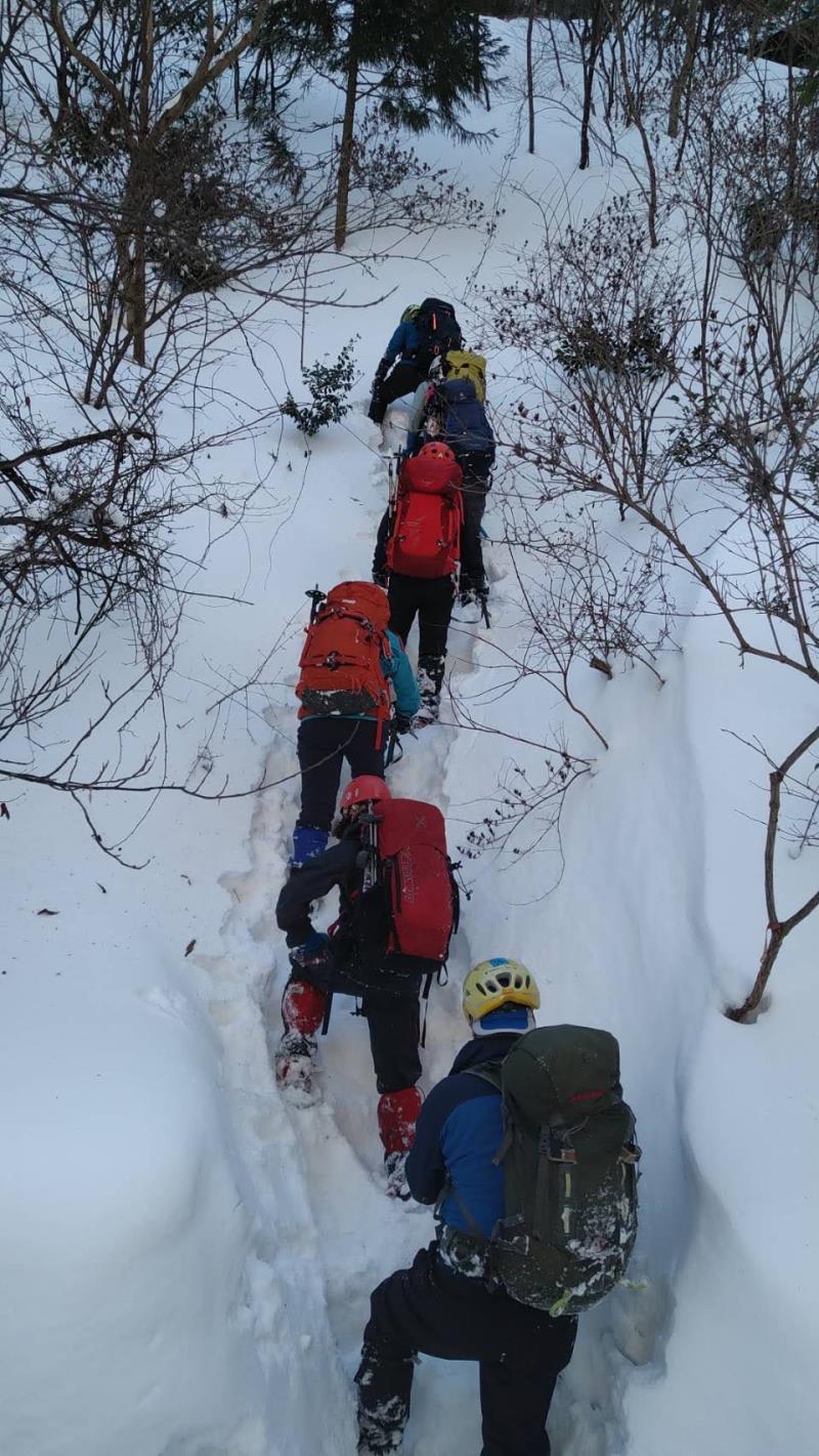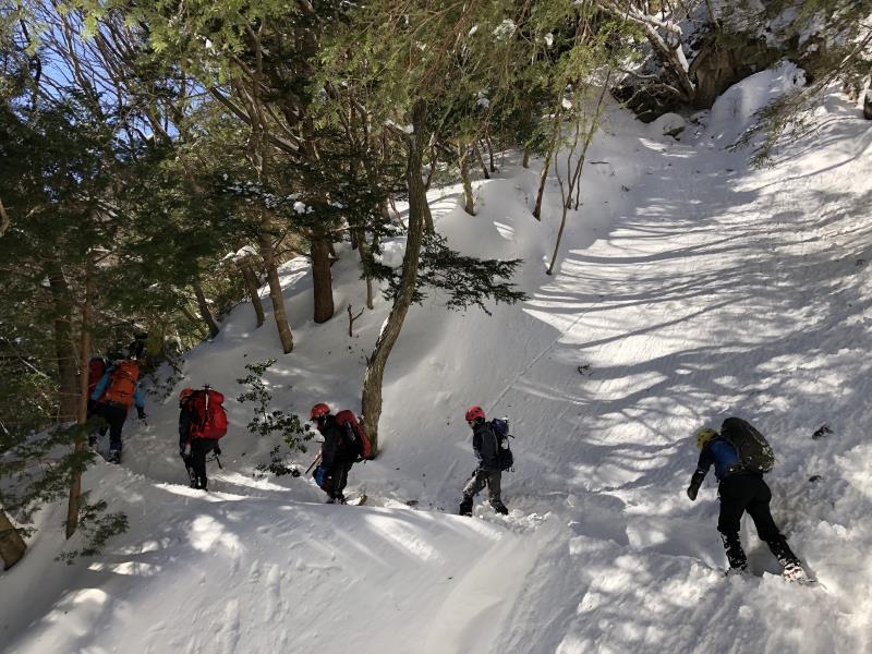 三ツ口谷は最初だけトレースがあったものの後はずっとラッセルで交替しながら進む。