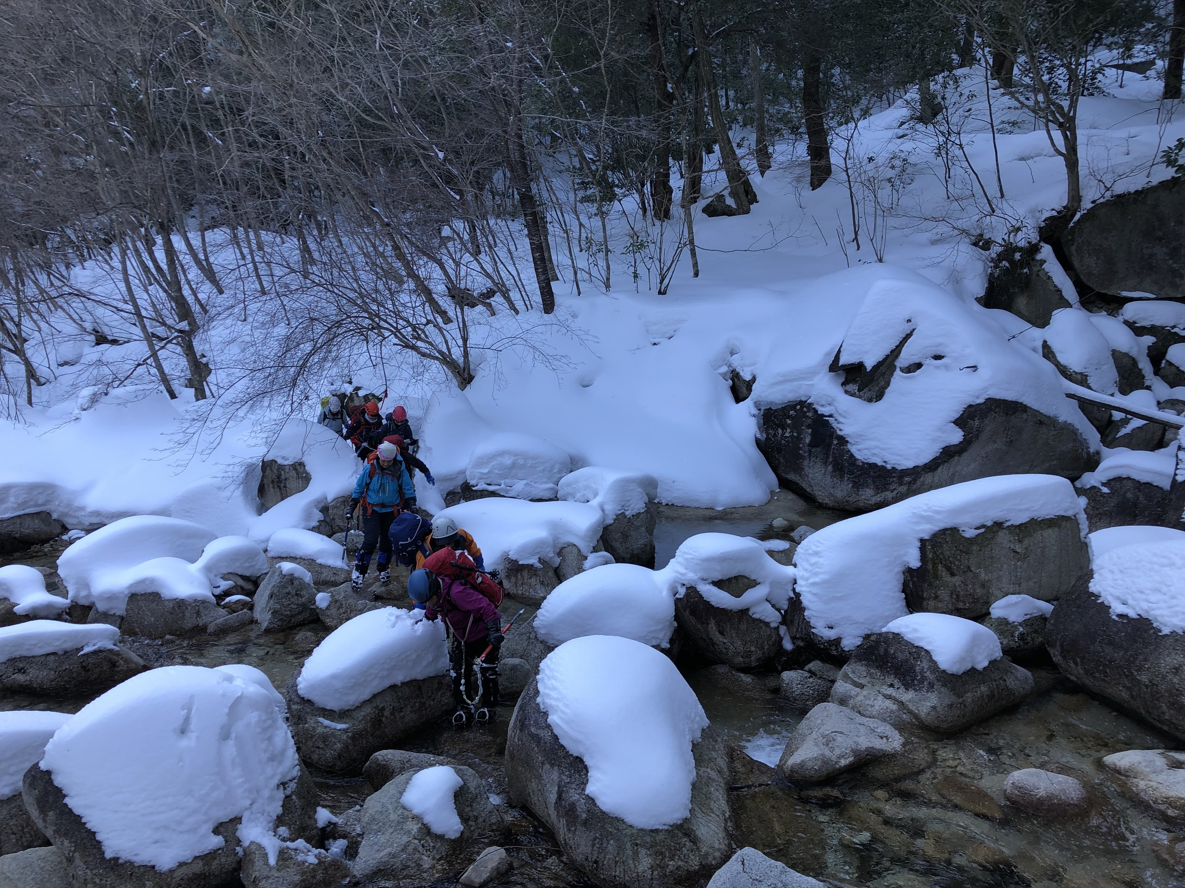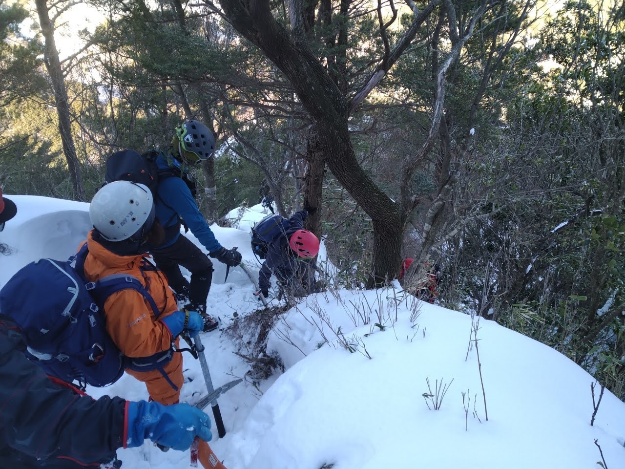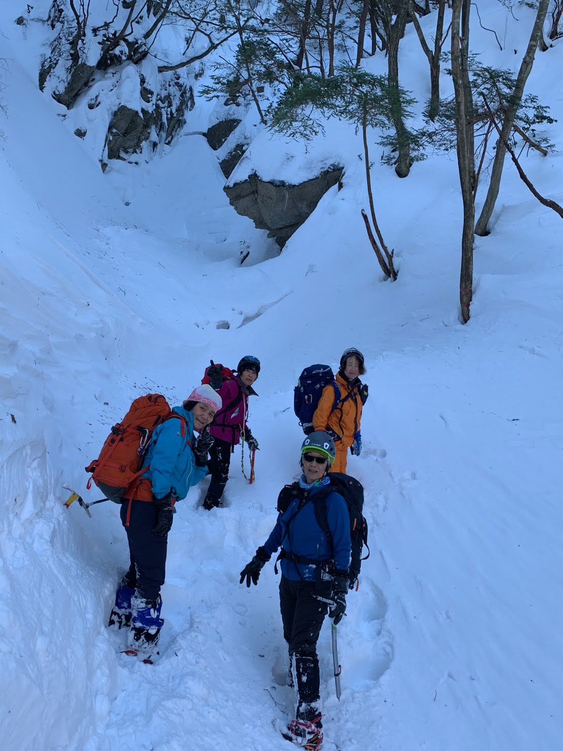三ツ口谷は最初だけトレースがあったものの後はずっとラッセルで交替しながら進む。
